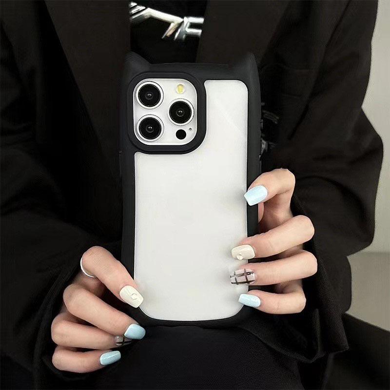 Apple 17pro 휴대 전화 케이스에 적합한 다채로운 테두리 홈 고양이 귀 13/14 검은 산 고양이 보호 커버 16 도매
