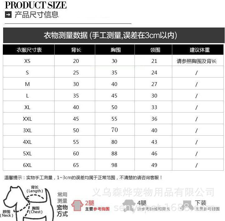 • 6XL (가슴 98CM, 약 55kg 애완동물)