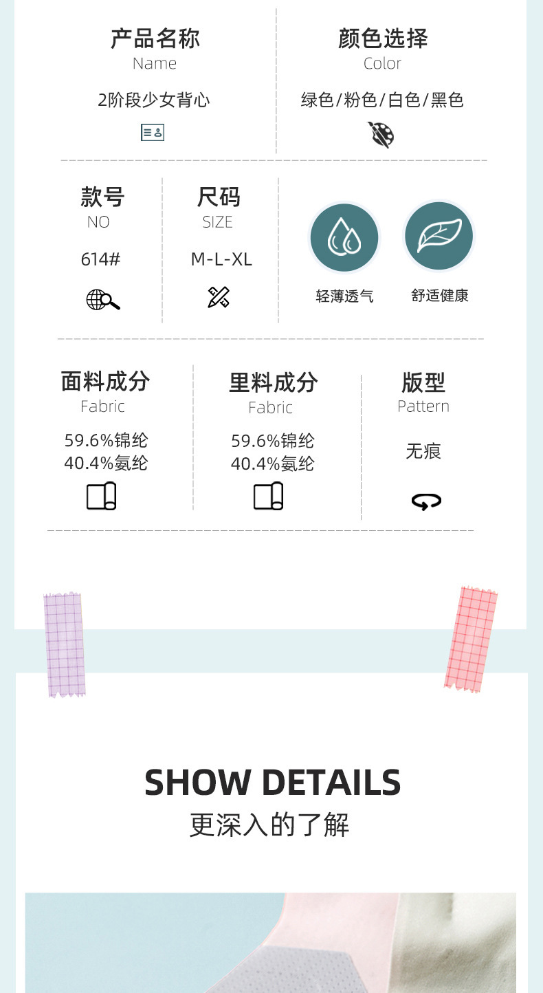 여아 속옷 조기 고교생 발전기간 원활한 고정컵 브래지어 '스포츠 충격 방지 조끼'스토어 가기