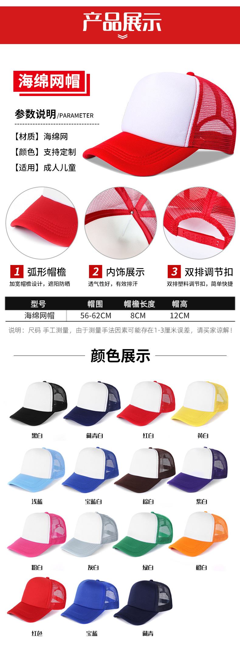 • 스펀지 메쉬 빨간색과 흰색 조합