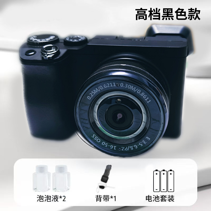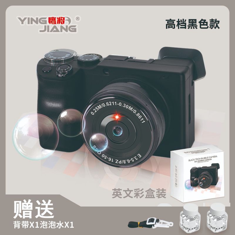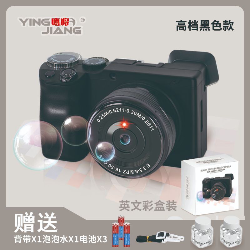 • 블랙 SLR 버블 카메라 전기 도금 업그레이드 모델(버블 워터 2개 + 스트랩 + 배터리 3개 포함) 영어 컬러 박스