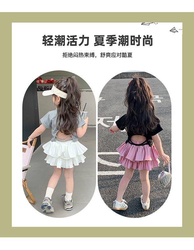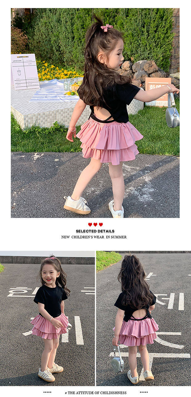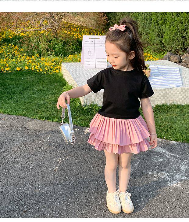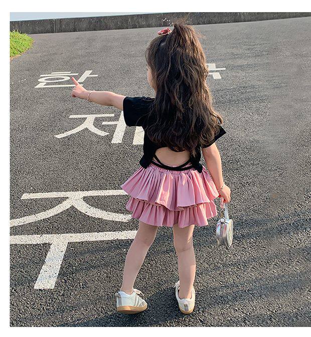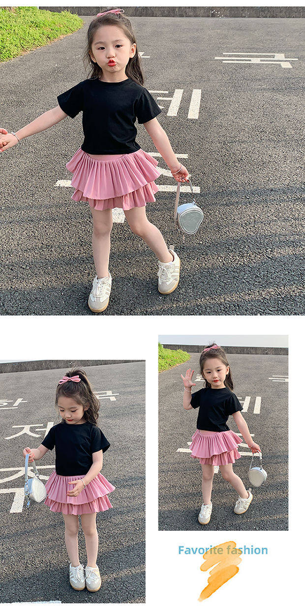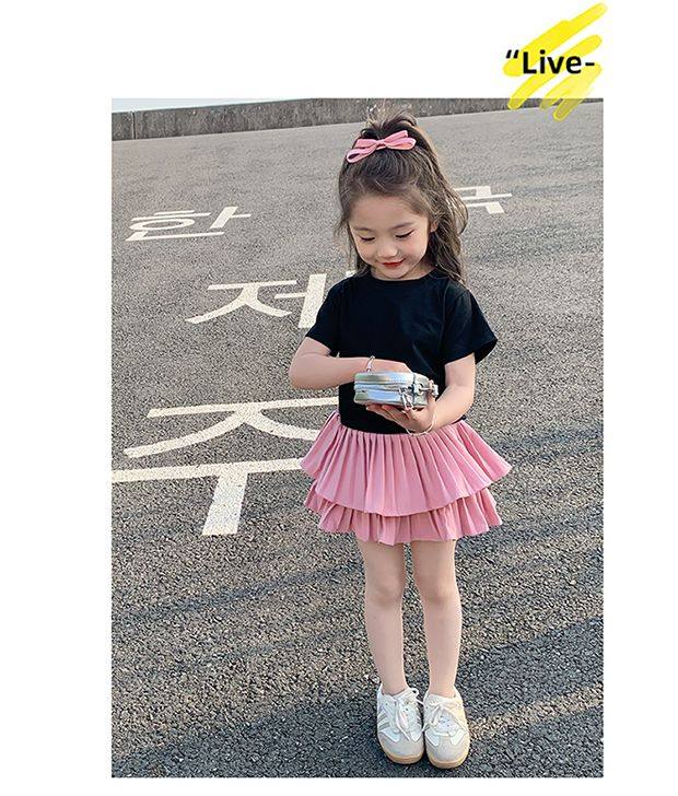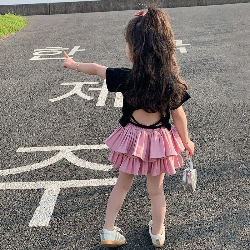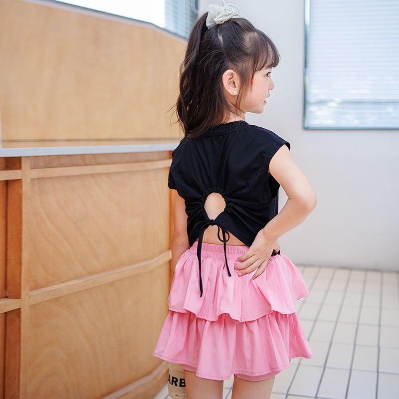 • 블랙 백 중공 반팔 + 핑크 케이크 스커트 + 안전바지 내장