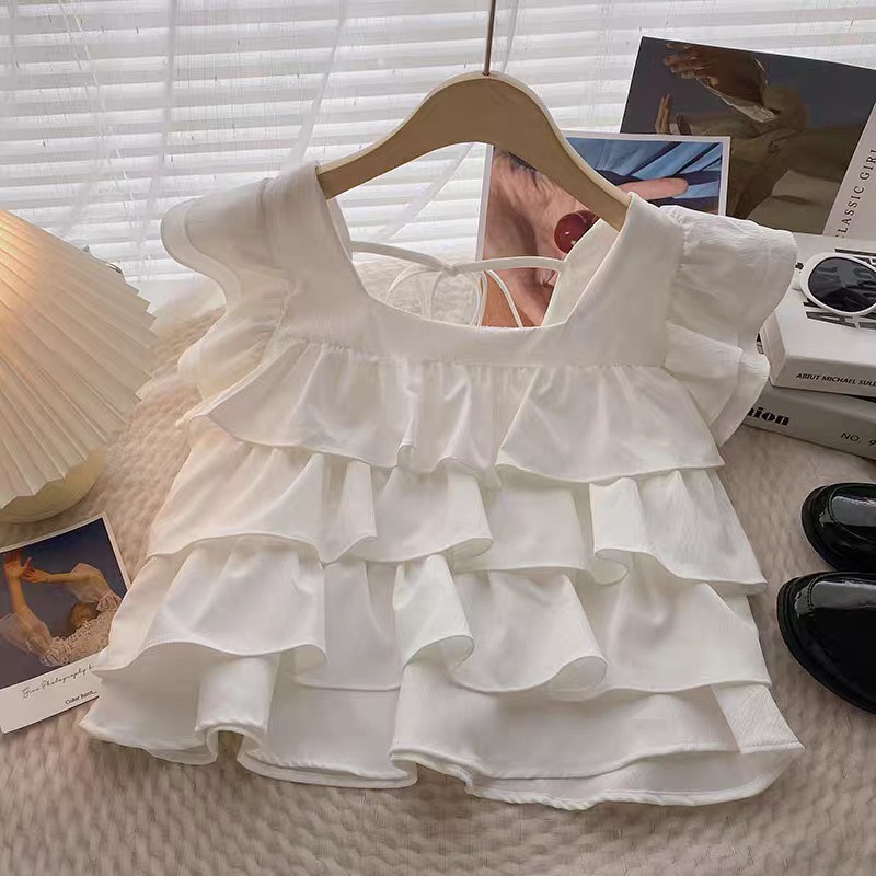 • 화이트 러플 탑