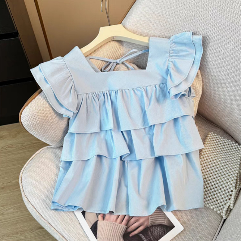 • 라이트 블루 러플 탑