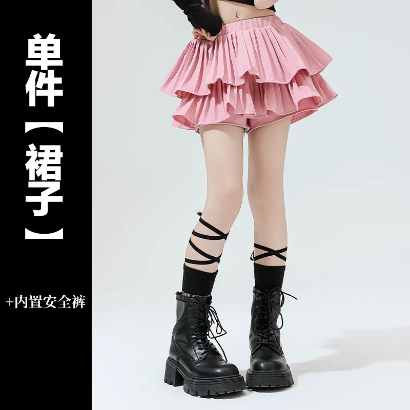 • 핑크 플리츠 스커트 + 업그레이드된 안전바지