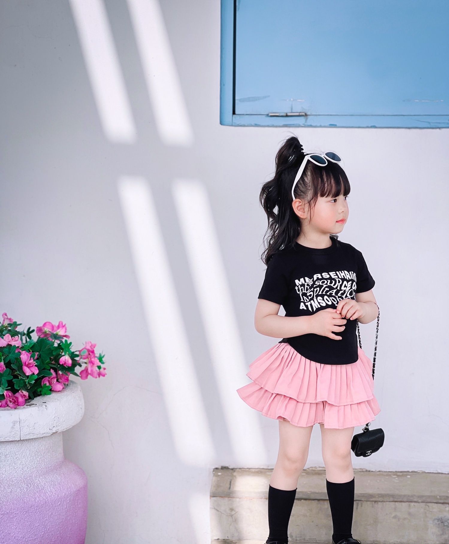 • 블랙 레터 반팔 탑 + 핑크 케이크 스커트 + 안전바지 내장