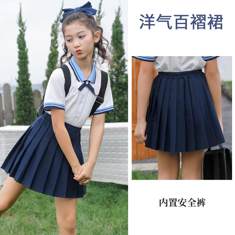 • 네이비 블루 플리츠 스커트 + 업그레이드된 안전바지