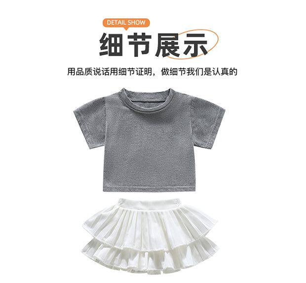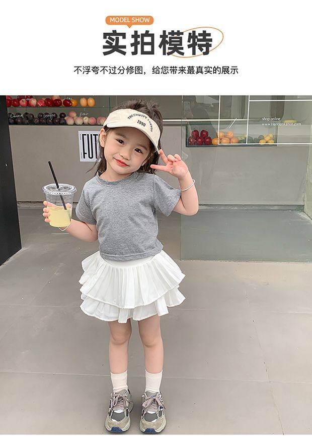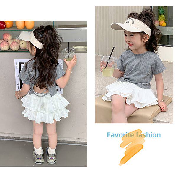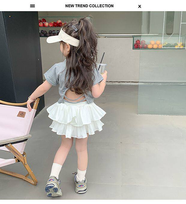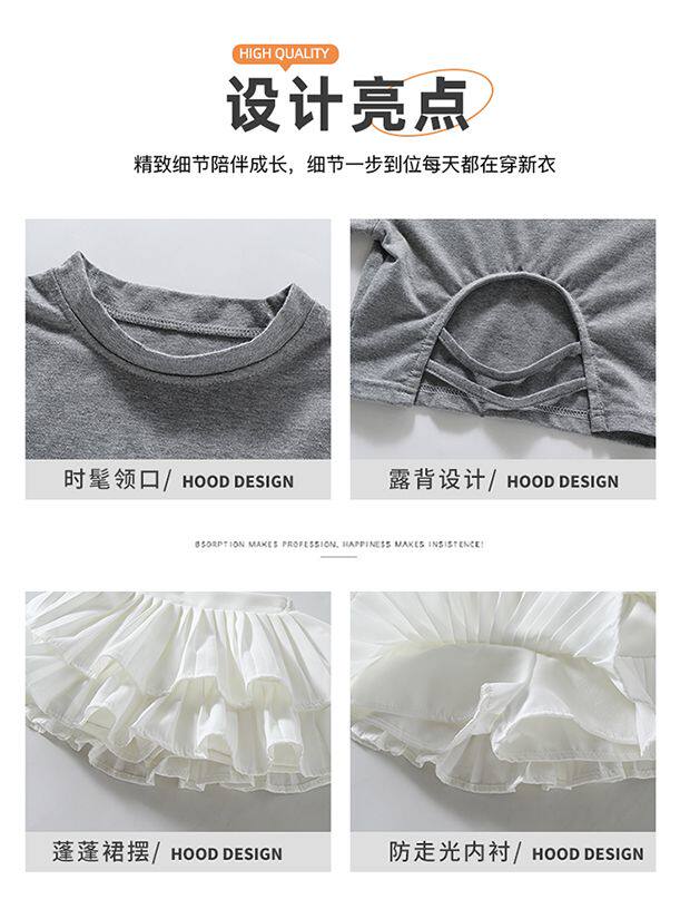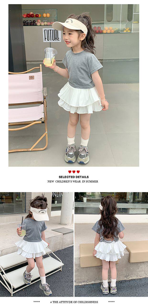 • 그레이 백 중공 반팔 + 화이트 케이크 스커트 + 안전바지 내장