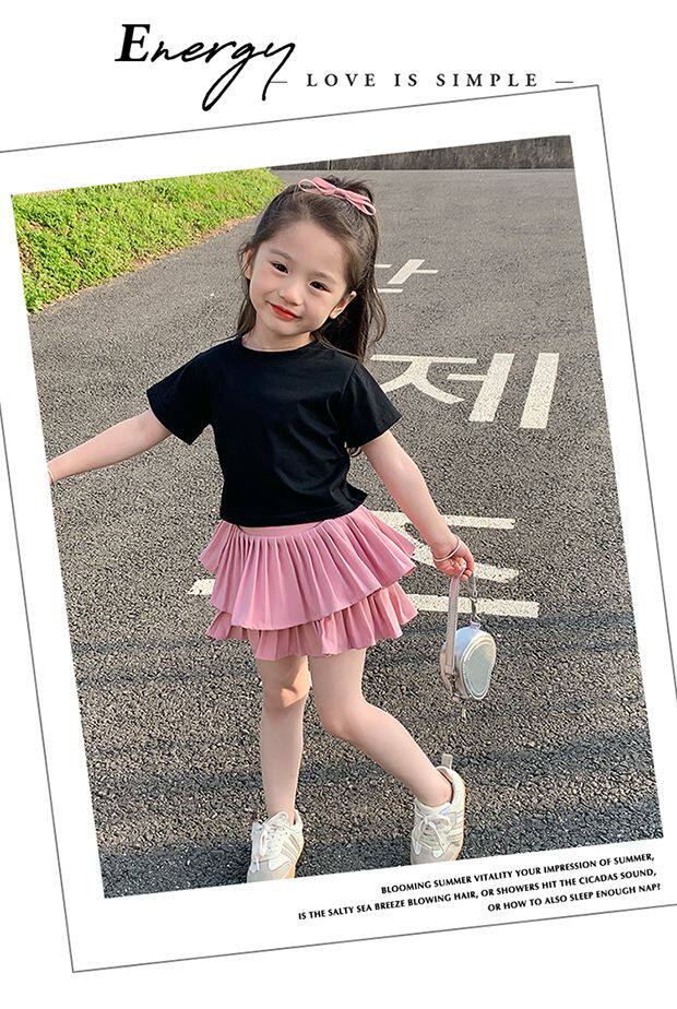 • 블랙 레터 반소매 + 화이트 케이크 스커트 + 안전바지 내장