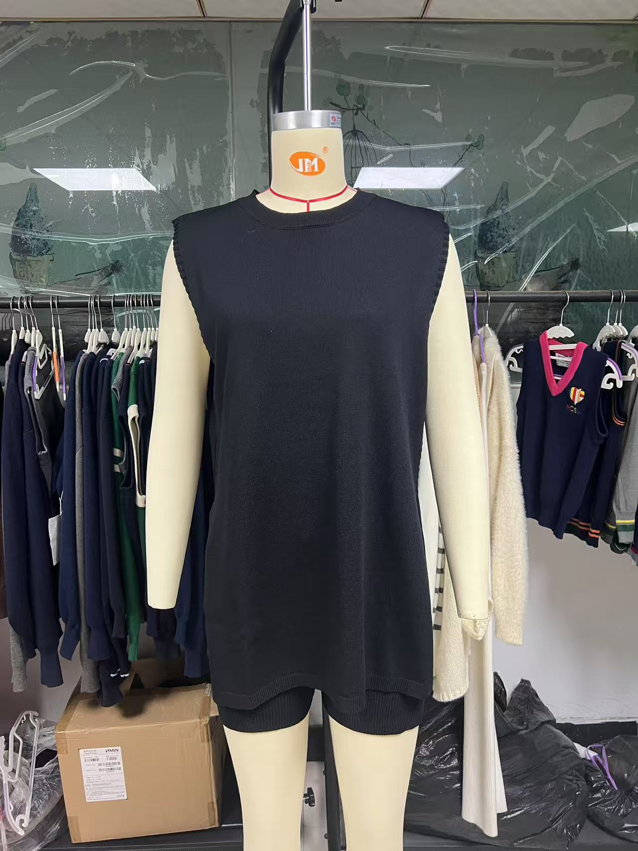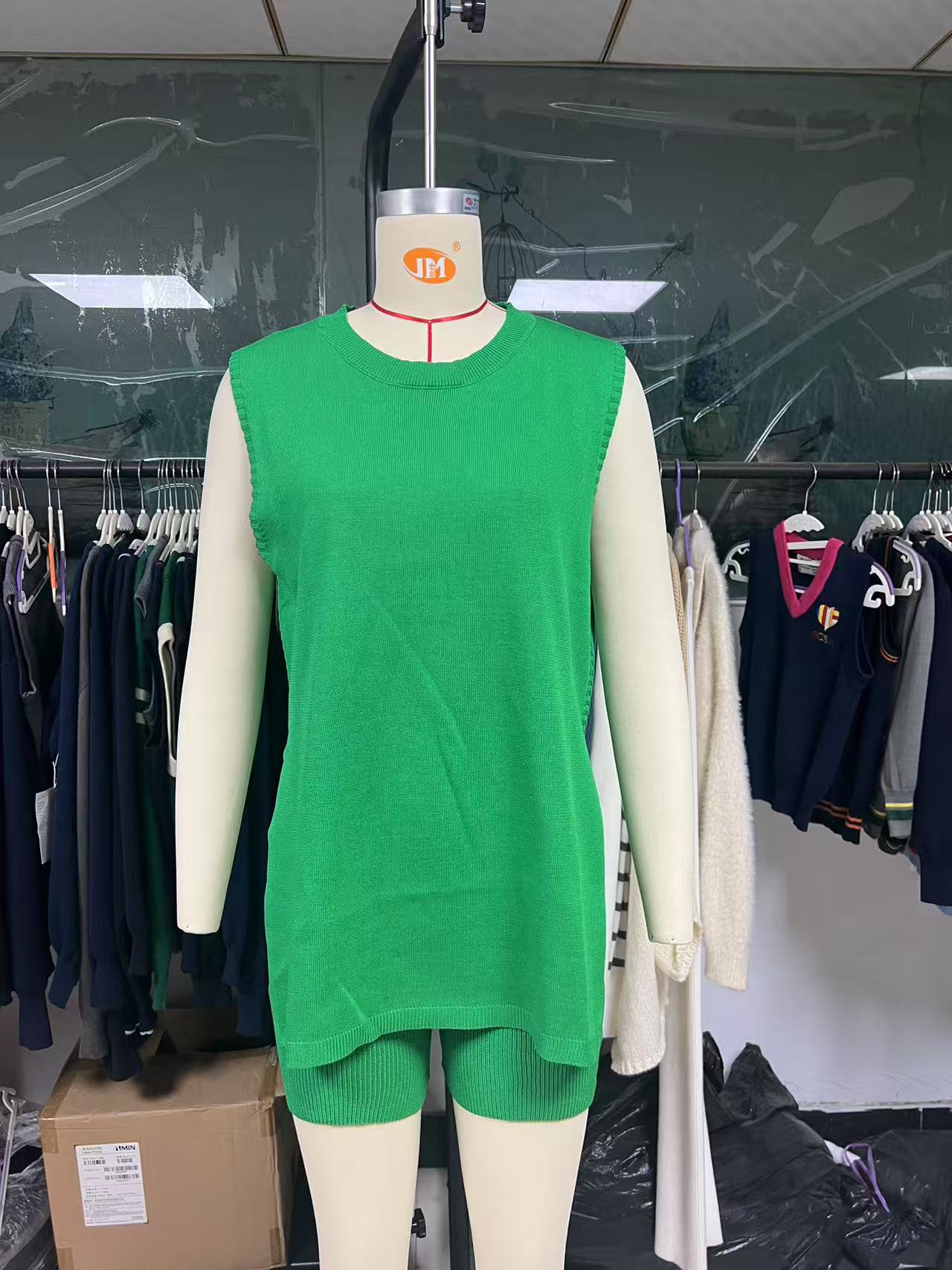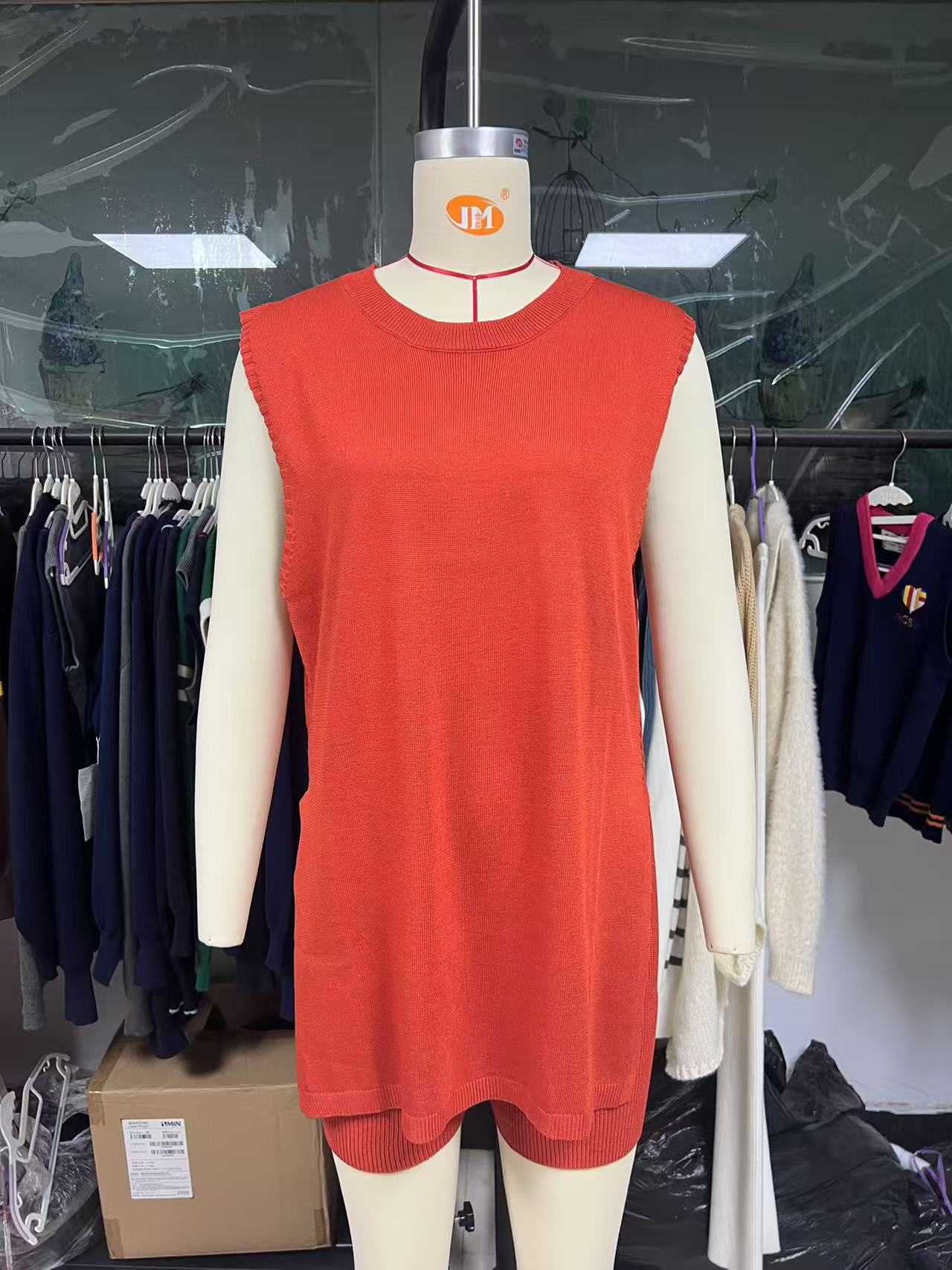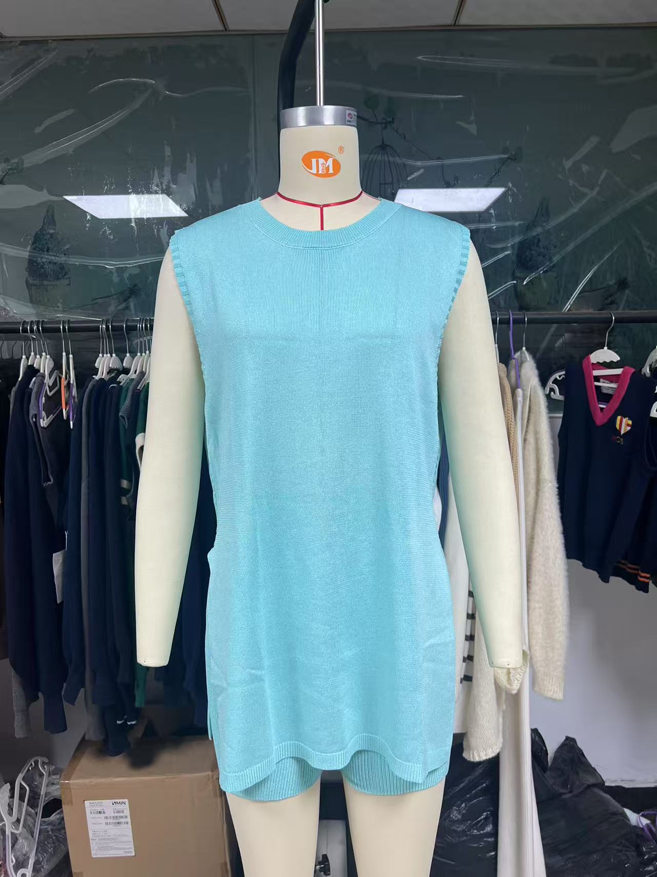 인기 니트 스웨터 세트 크로스보더 여름 여성 유럽과 미국의 니트 스웨터 루즈한 민소매 캐주얼 스웨터 여성용 투피스 세트