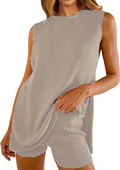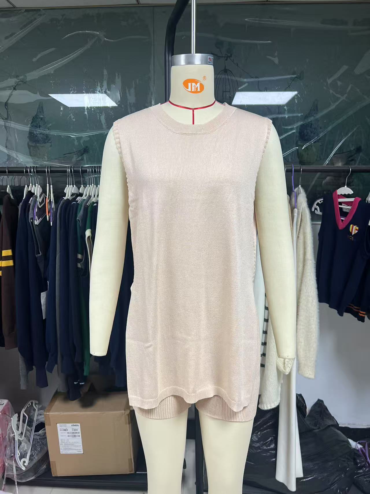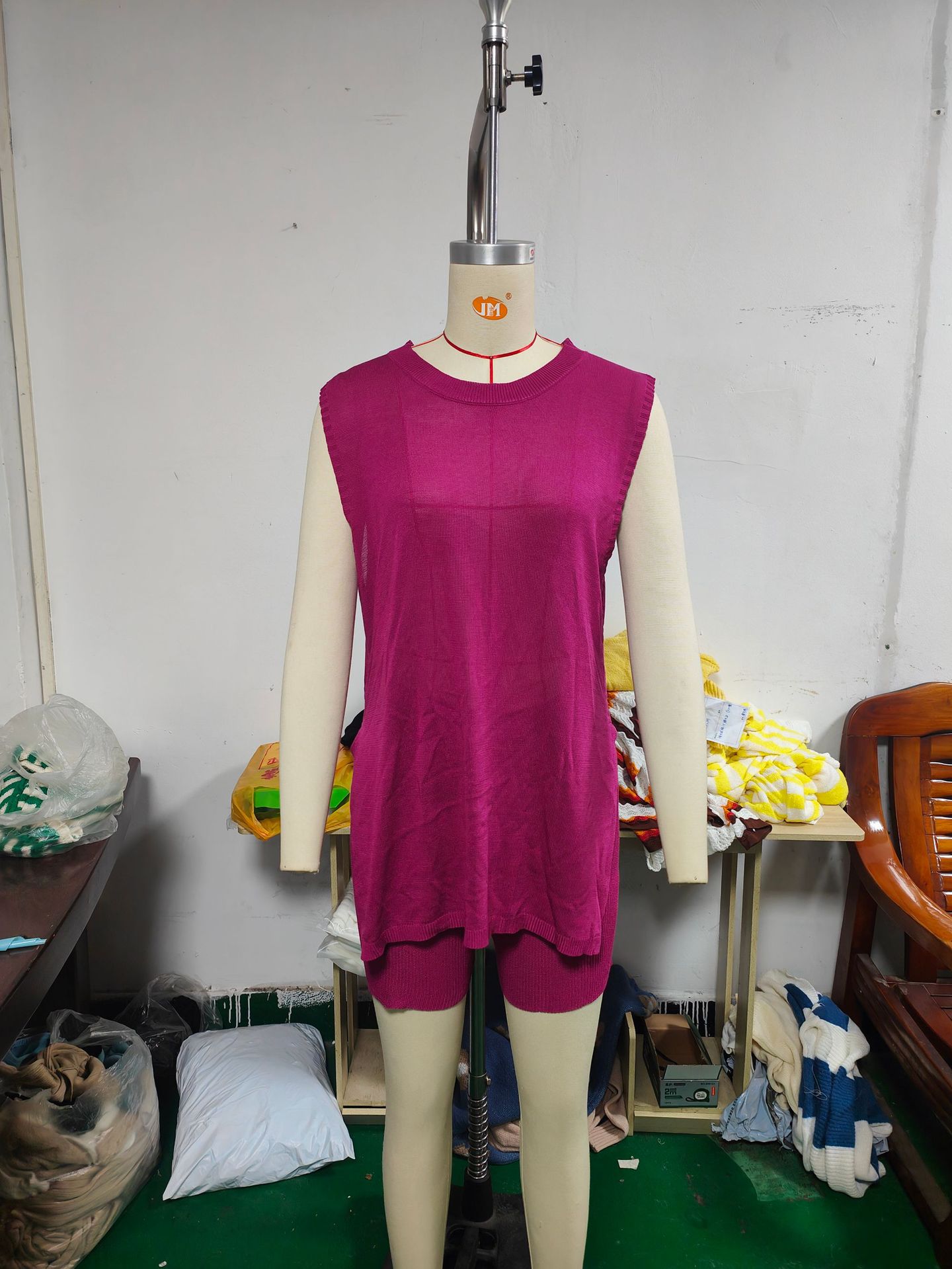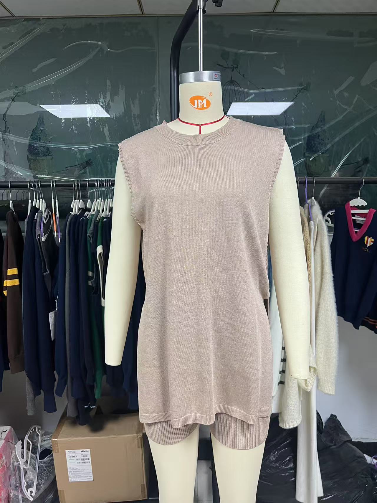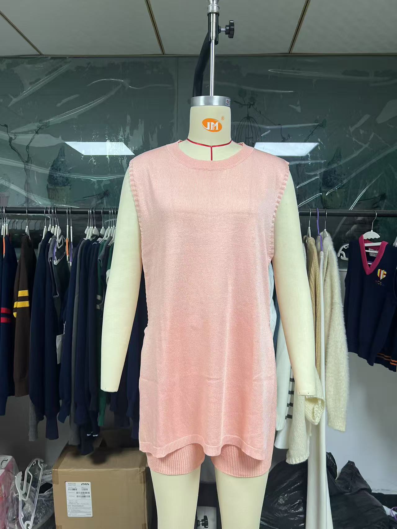 인기 니트 스웨터 세트 크로스보더 여름 여성 유럽과 미국의 니트 스웨터 루즈한 민소매 캐주얼 스웨터 여성용 투피스 세트
