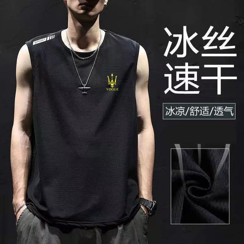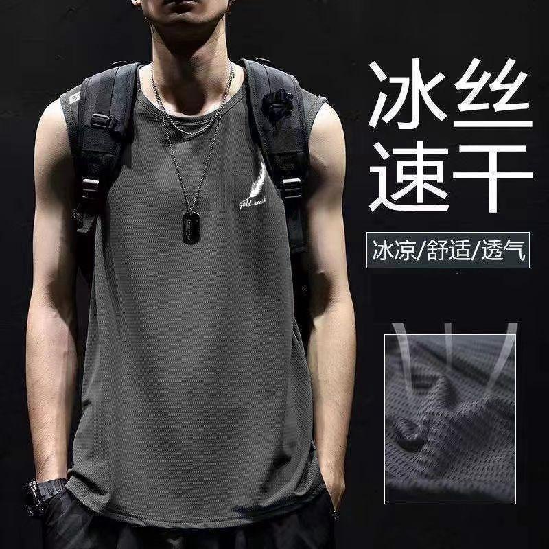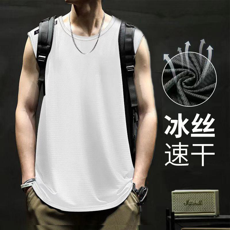 남자 아이스 실크 조끼 여름 스포츠 피트니스베이스 셔츠 넓은 어깨 훈련 얇은 민소매 티셔츠 허리 코트 빠른 건조 남성 패션스토어 가기