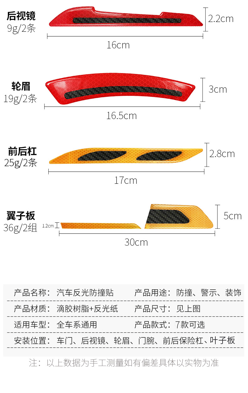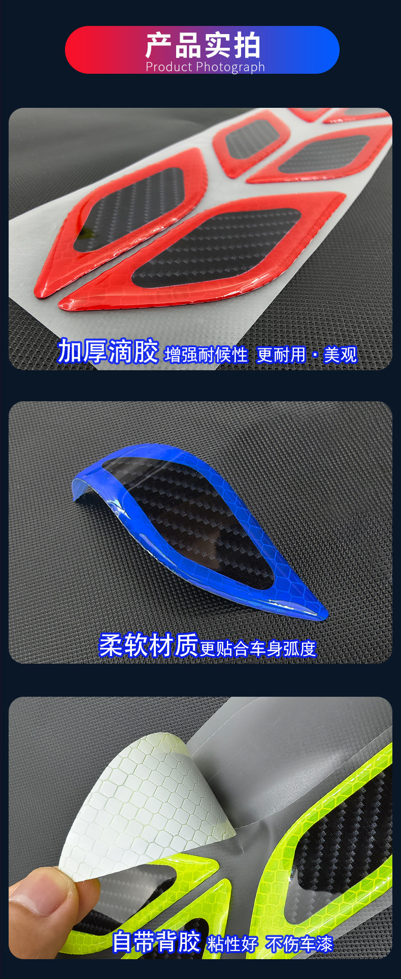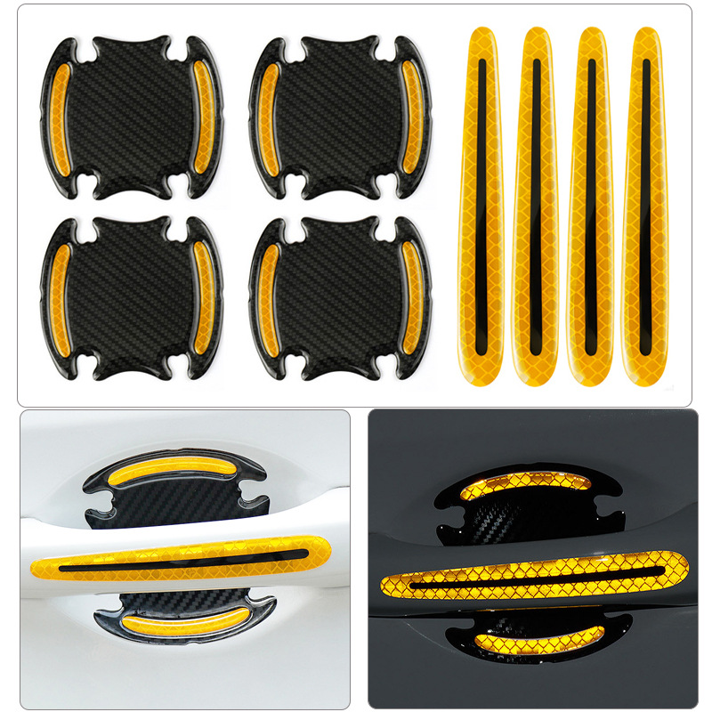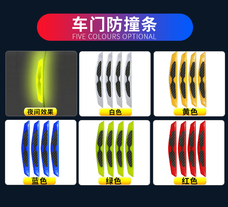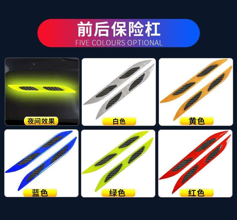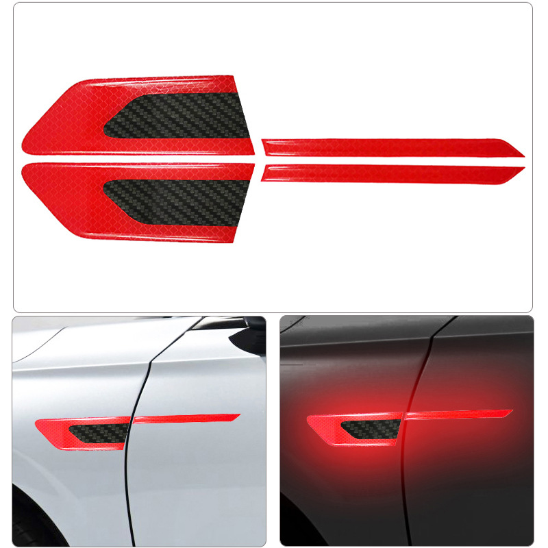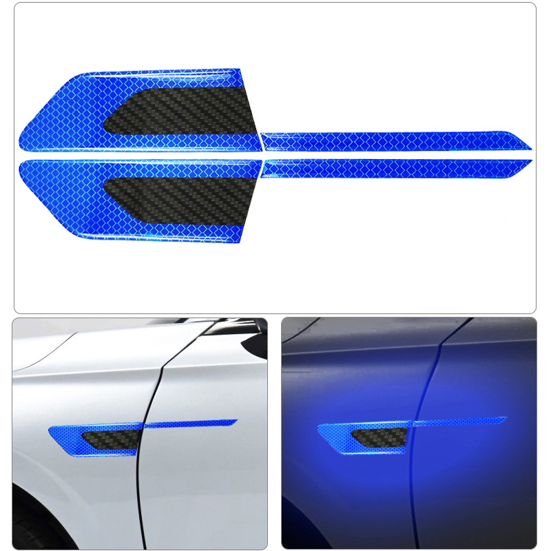 자동차 반사 장식 스티커 충돌 방지 스트립 탄소 섬유 패턴 독특한 밤 빛나는 반사 안전 경고 스티커 자동차 스티커