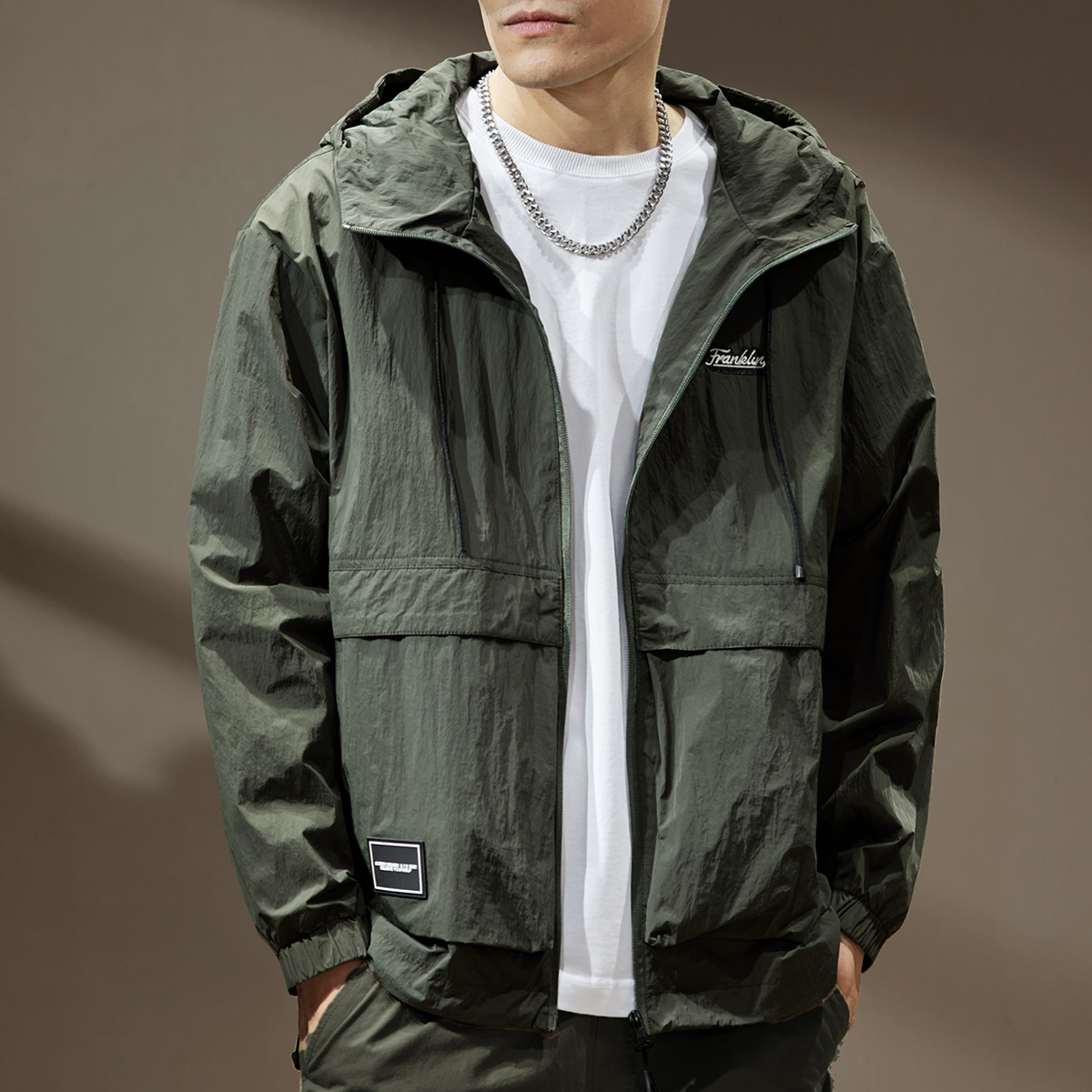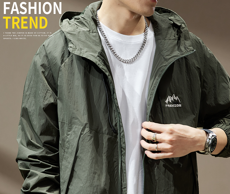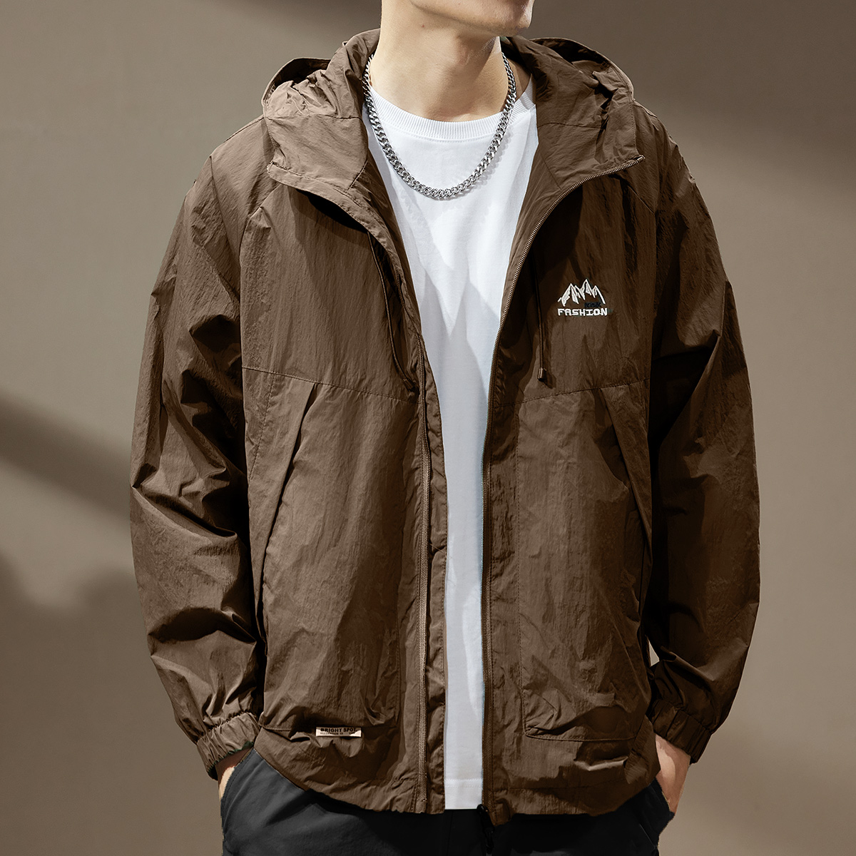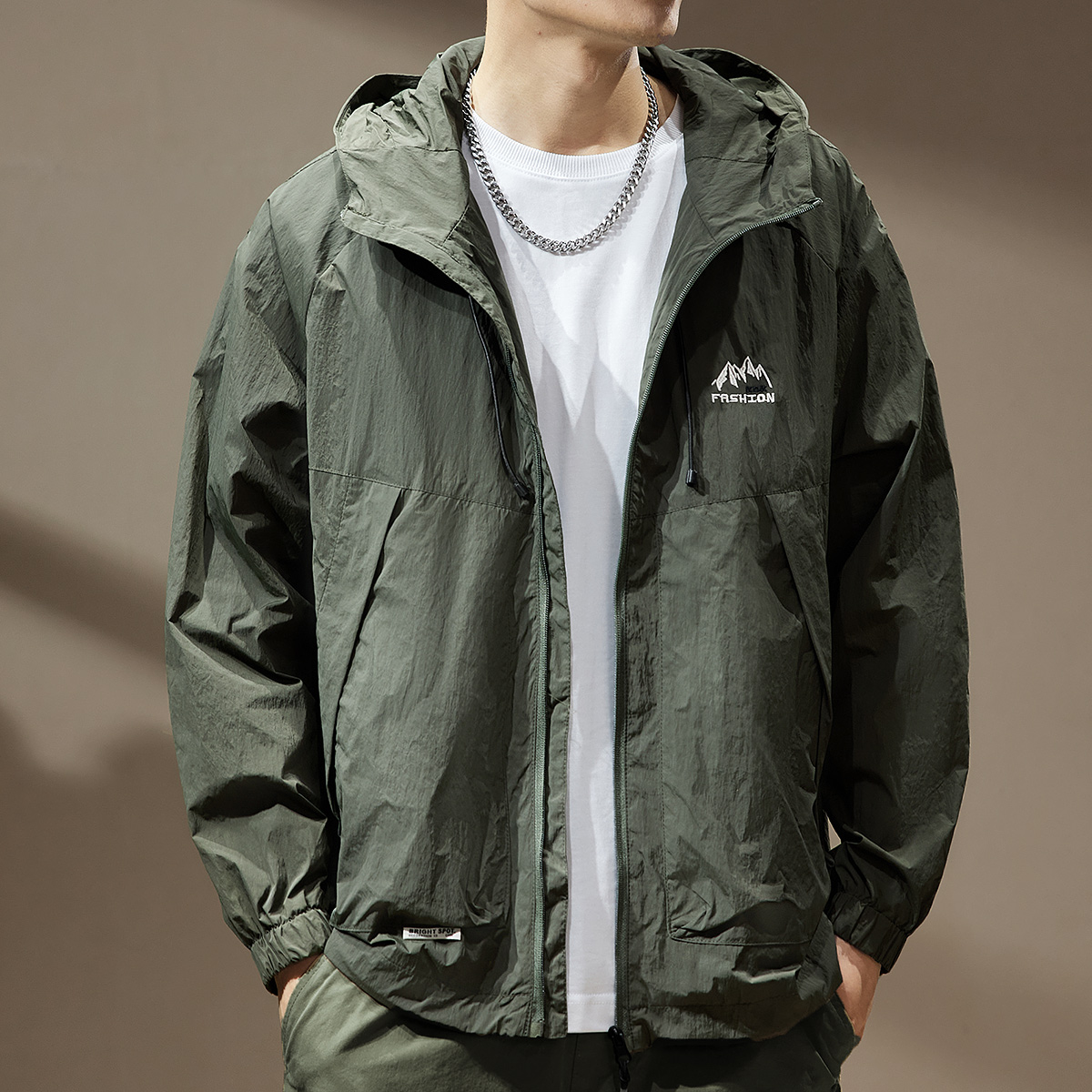 봄 새로운 야외 스포츠 재킷 남성용 느슨한 후드 작업 자켓 방풍 카디건 등산 재킷