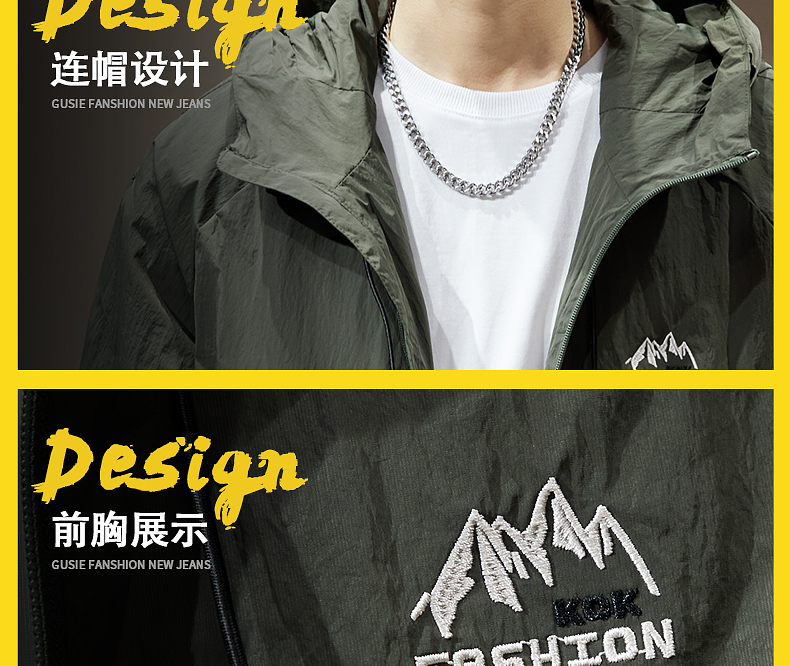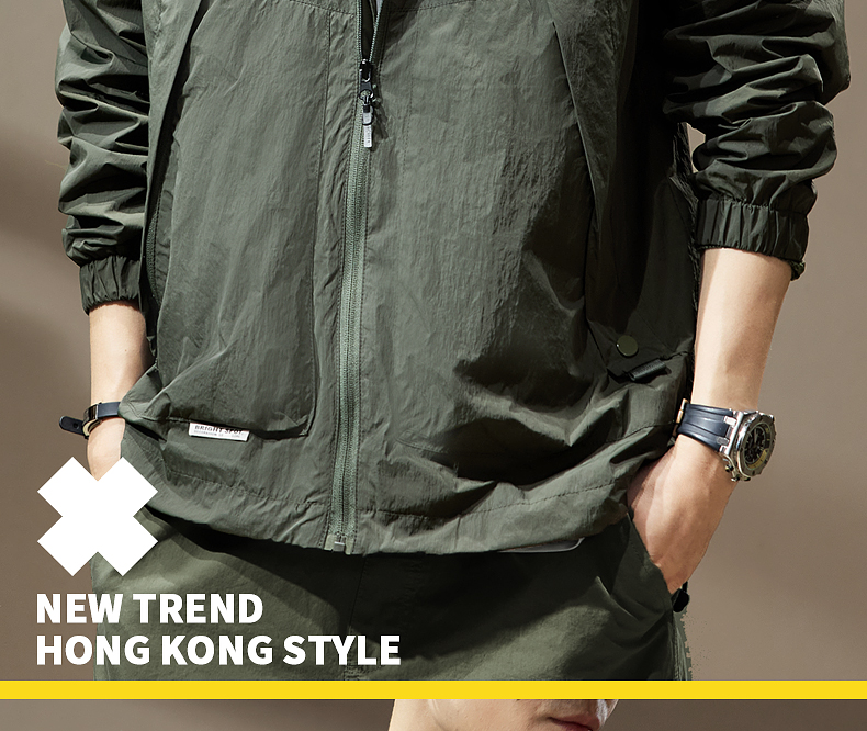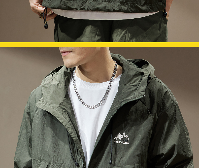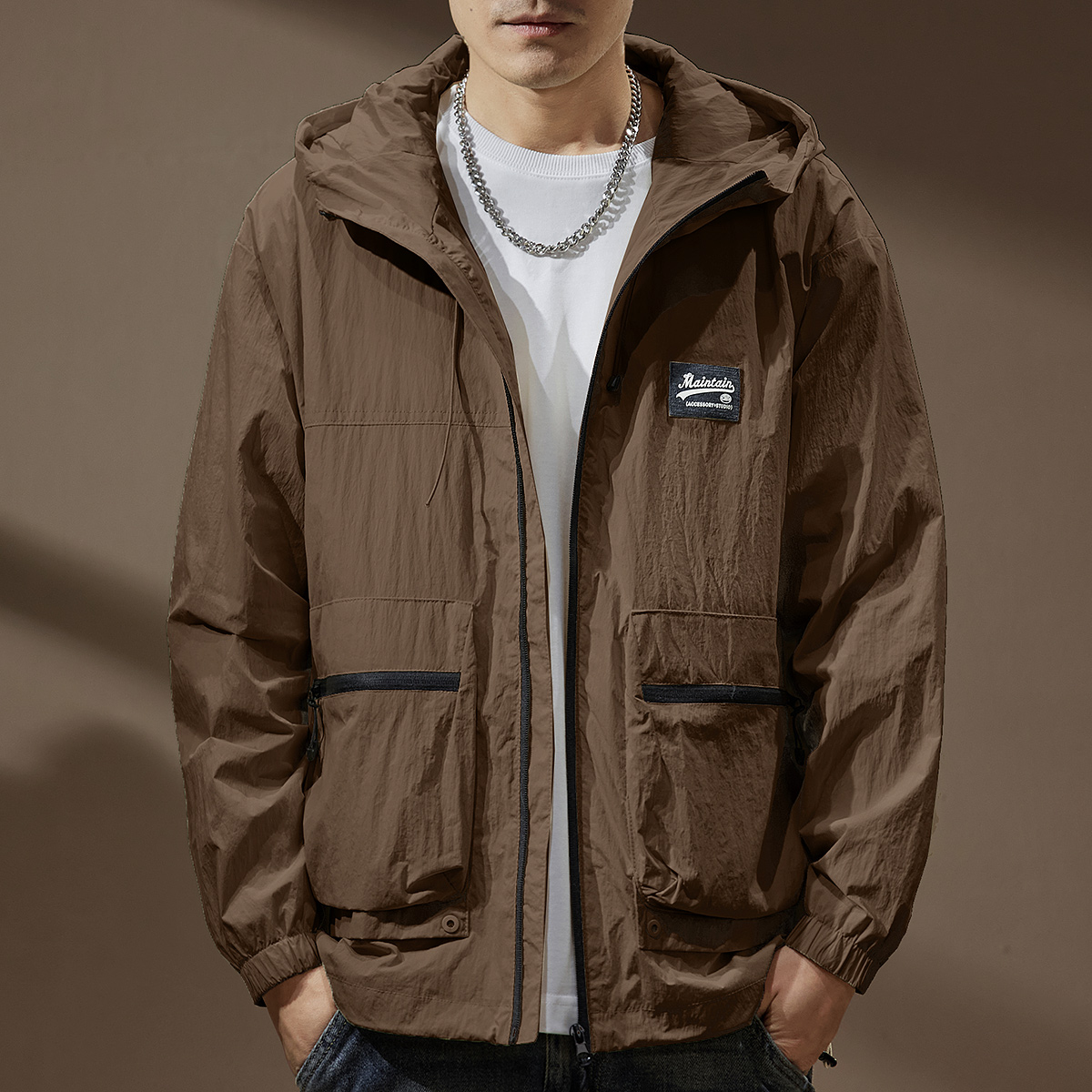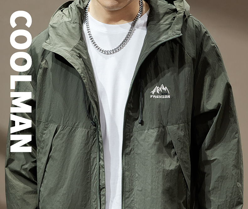 봄 새로운 야외 스포츠 재킷 남성용 느슨한 후드 작업 자켓 방풍 카디건 등산 재킷