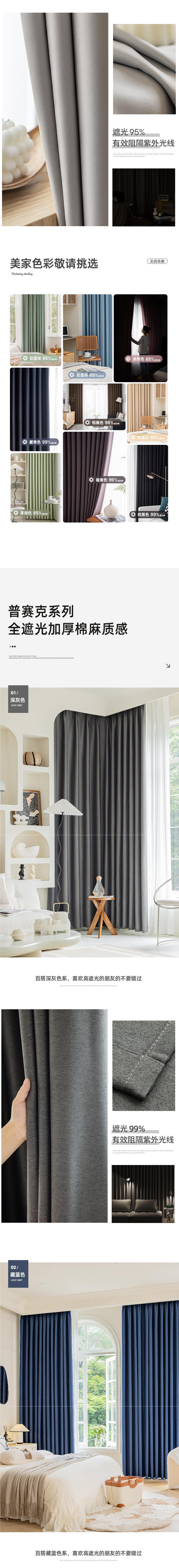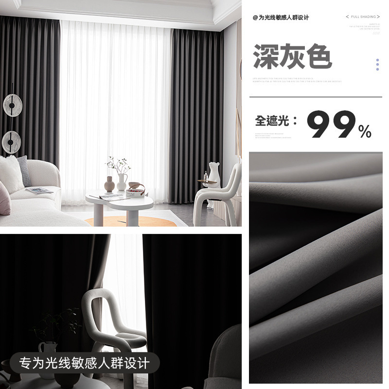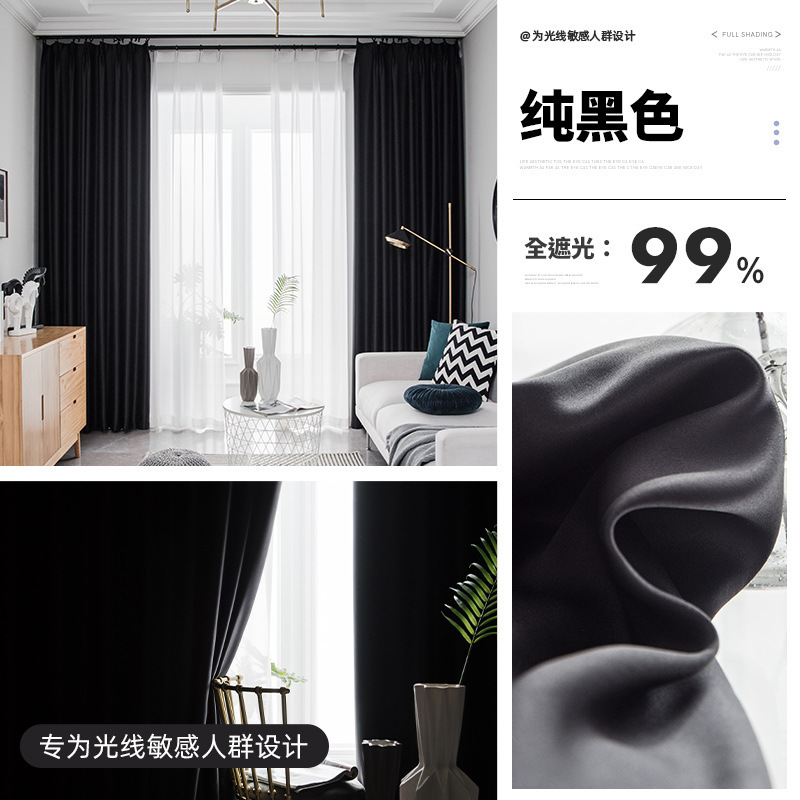 전체 음영 커튼 침실 2024 새로운 후크 형 베이 창 단열 태양 차단 검은 색 음영 천스토어 가기