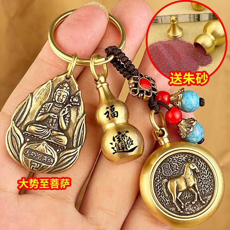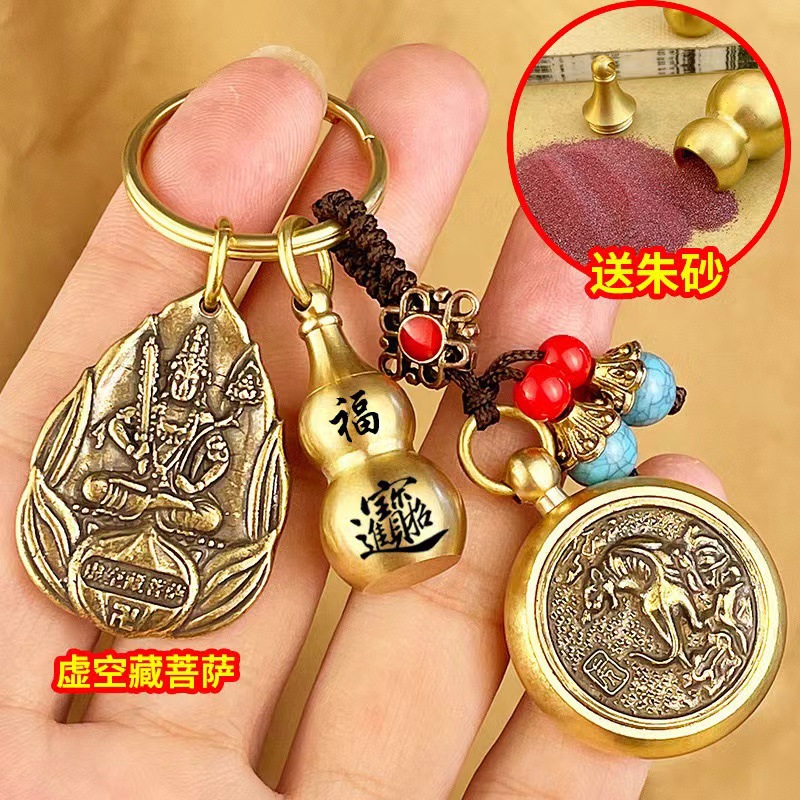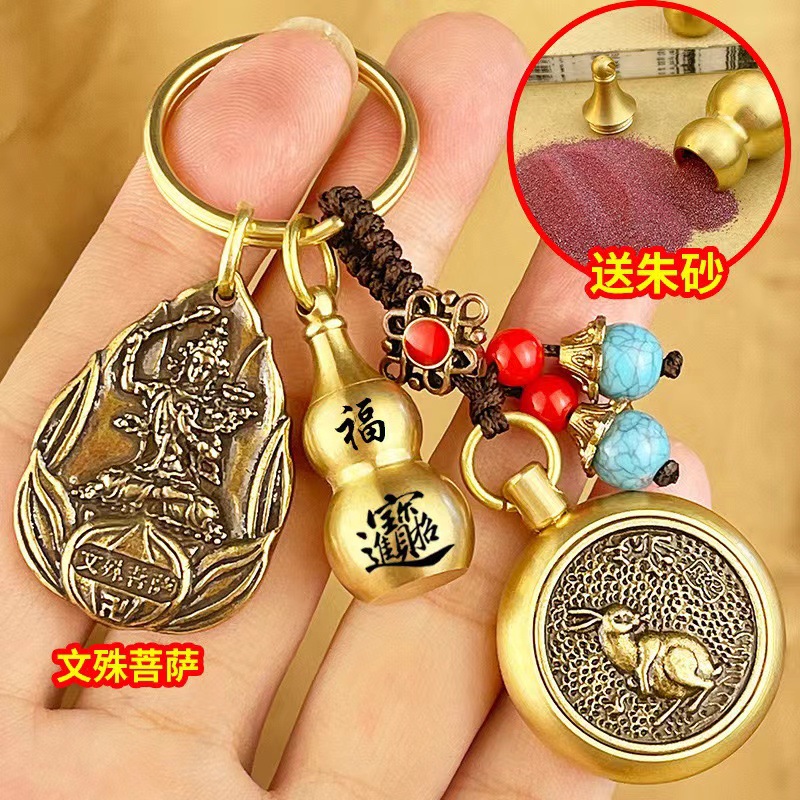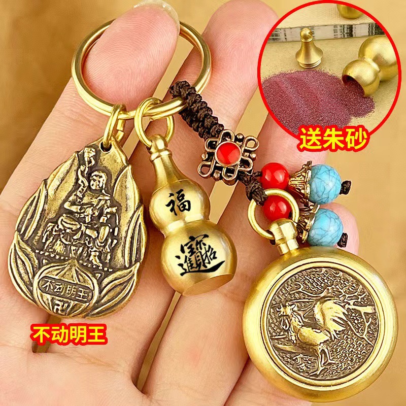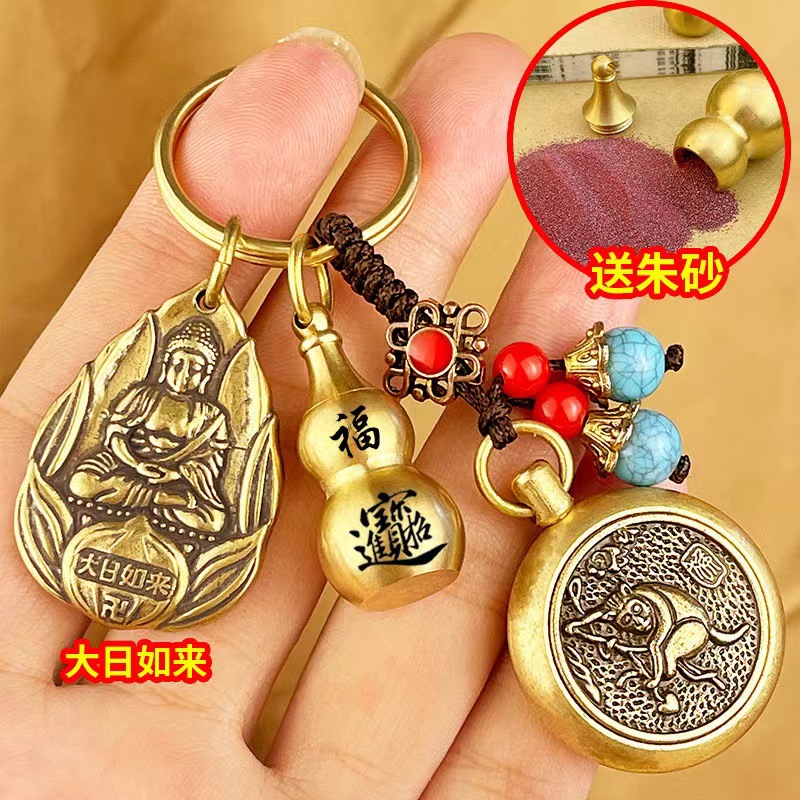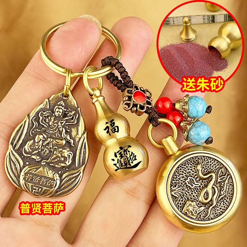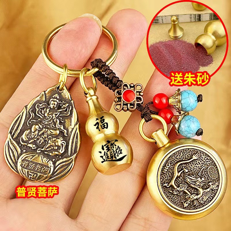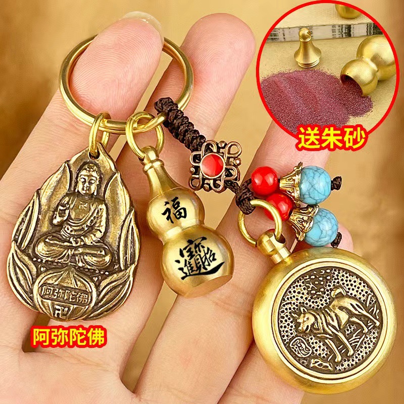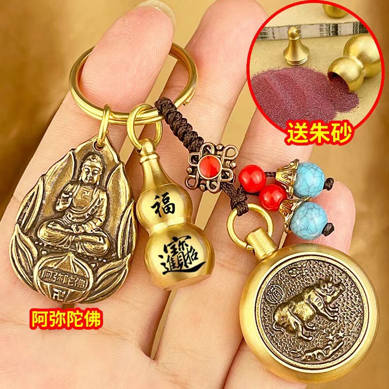 물방울 황동 12 조디악 벤 밍포 여덟 후원자 신 키 체인 럭키 머니 송금 Cinnabar Gourd 빈티지 펜던트스토어 가기