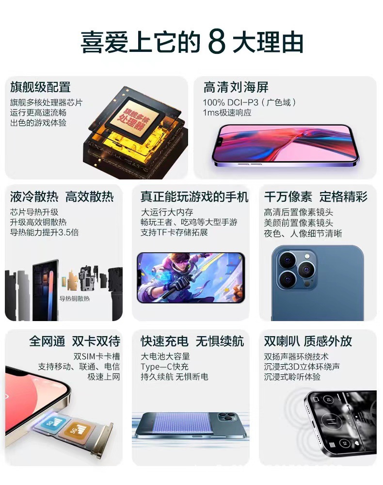 새로운 공식 정품 13Pro 최대 학생 가격 전자 스포츠 게임 스마트 폰 100 위안 모든 Netcom 5G