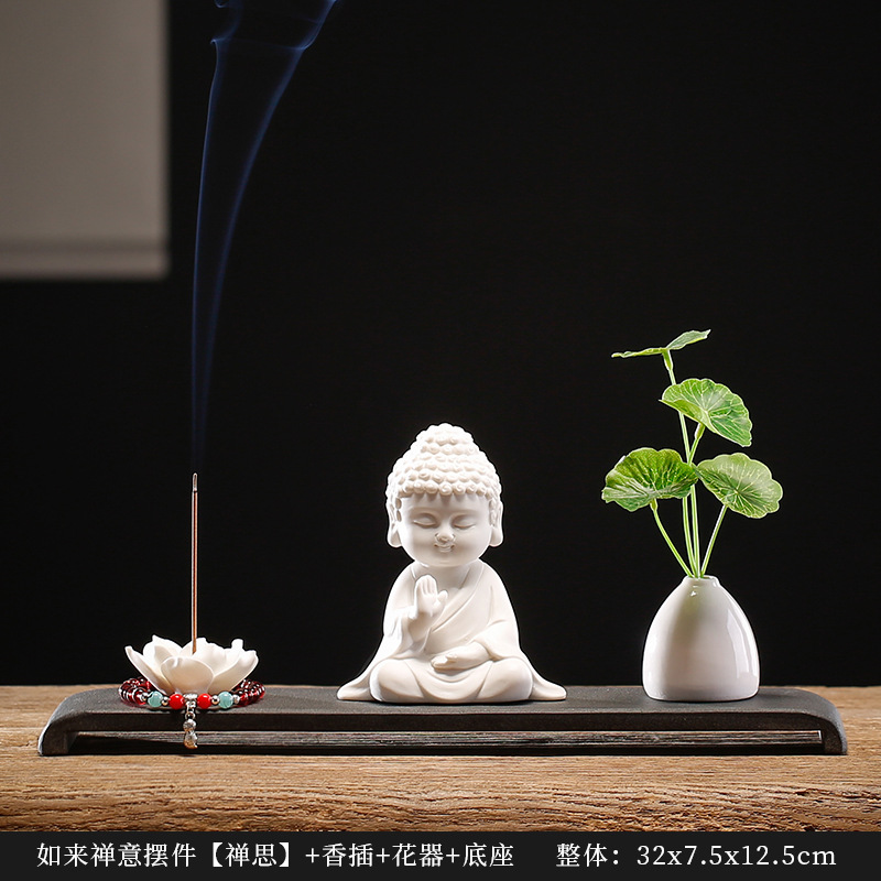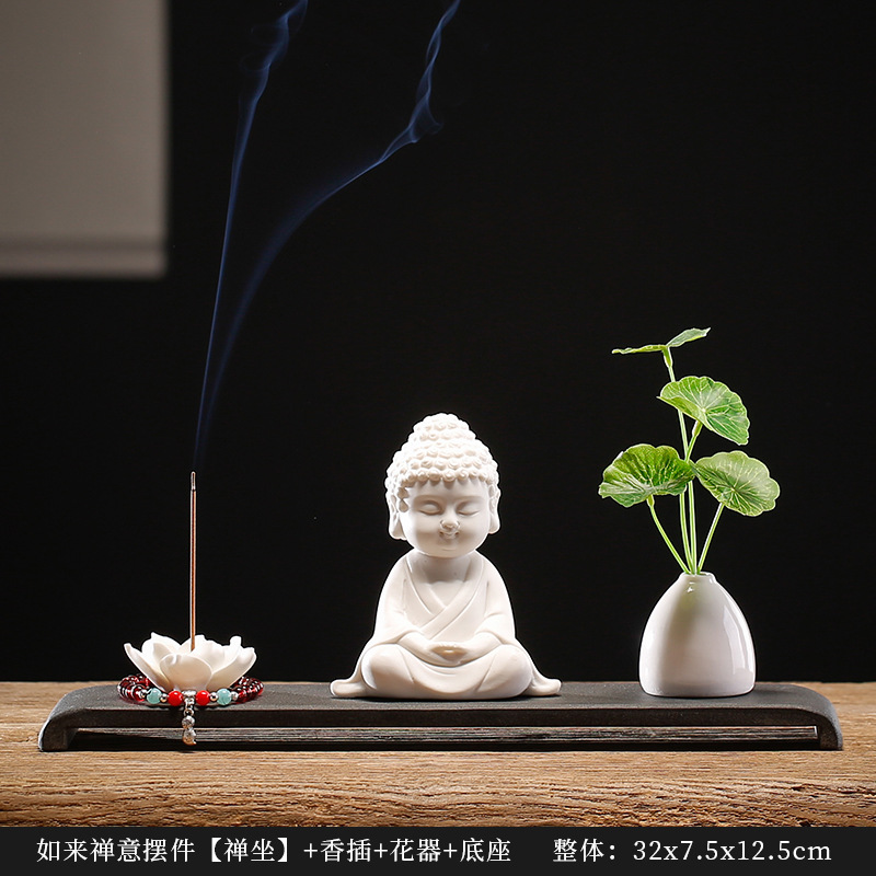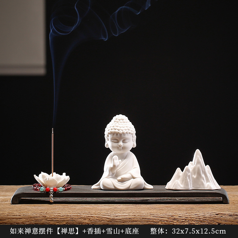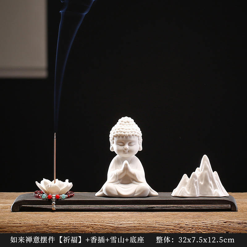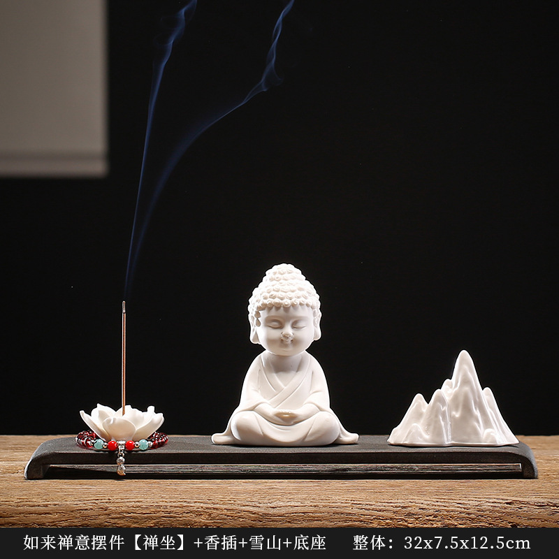 흰색 도자기 작은 타타 가타 창조적 인 선 축복 라인 향 삽입 샌달 우드 시트 홈 홈 거실 장식 공예 장식