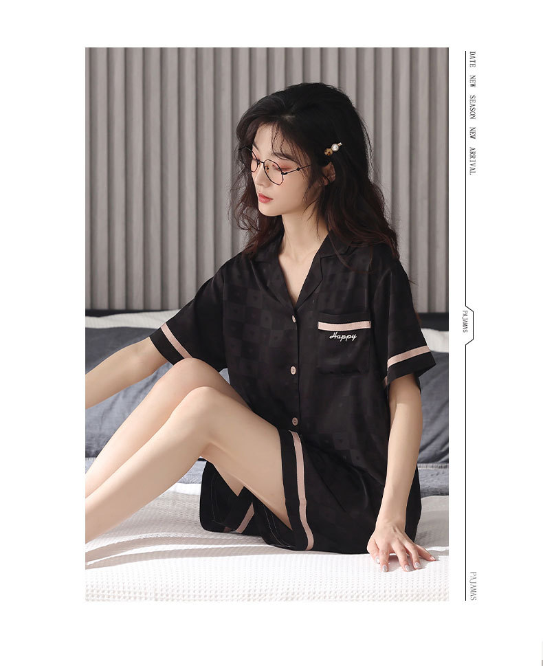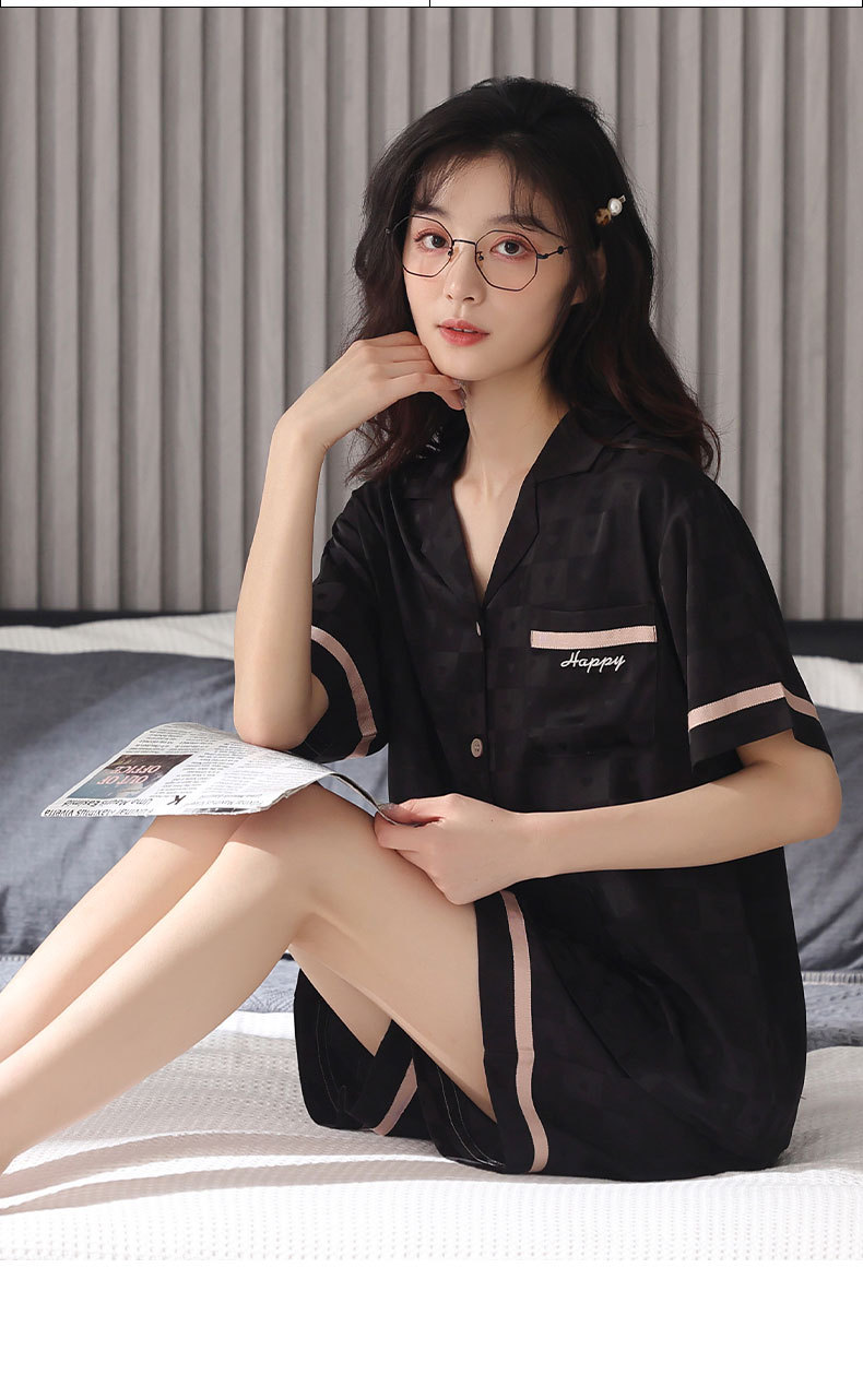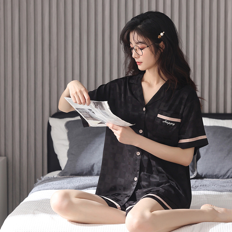 커플 아이스 실크 파자마 여성 여름 반팔 반바지 카디건 2024 새로운 스타일 쿨 여름 남자 홈 의류 세트스토어 가기
