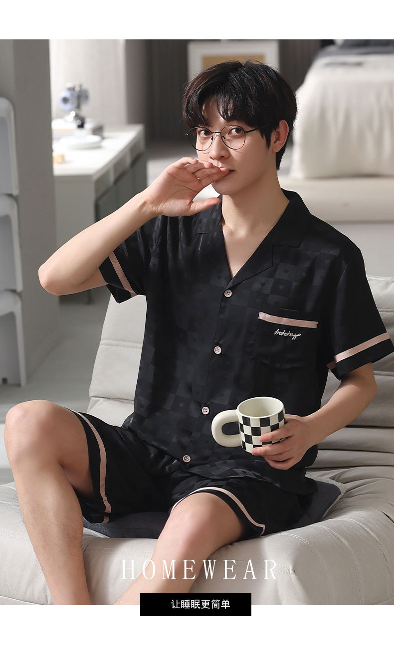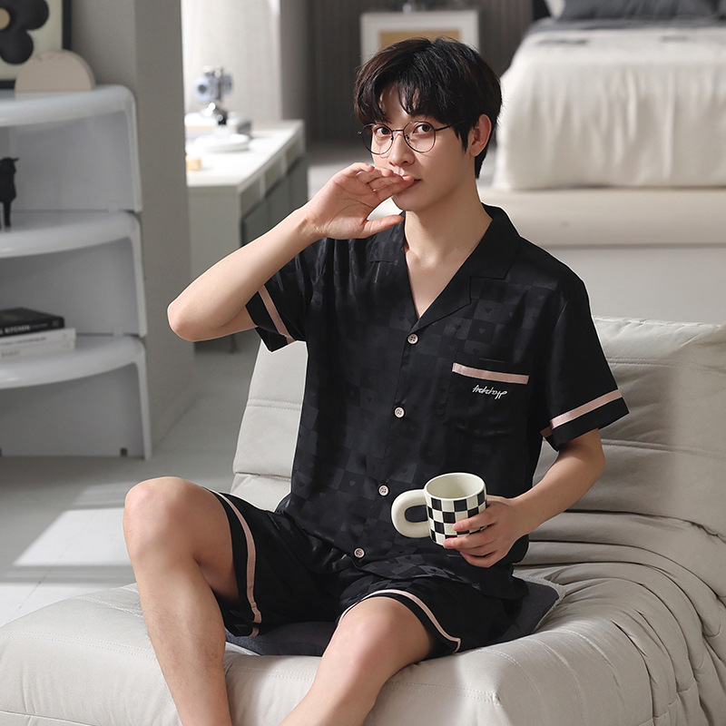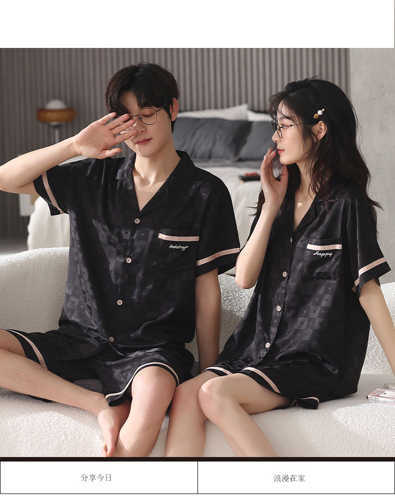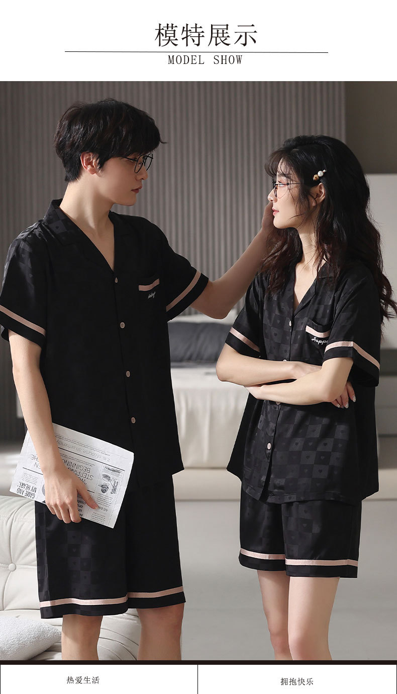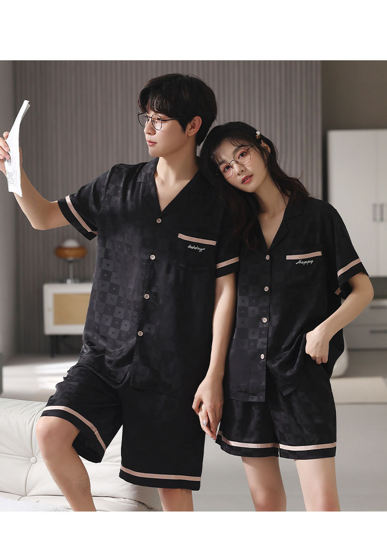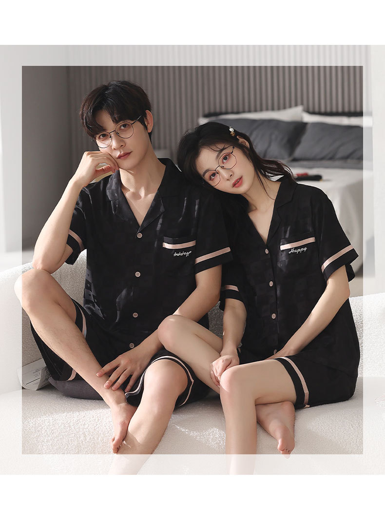 커플 아이스 실크 파자마 여성 여름 반팔 반바지 카디건 2024 새로운 스타일 쿨 여름 남자 홈 의류 세트