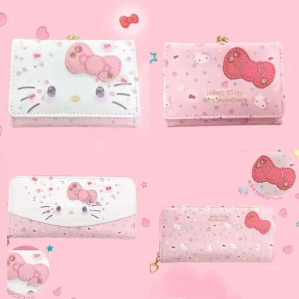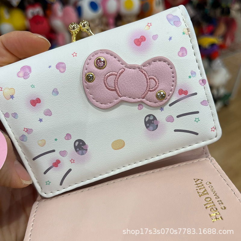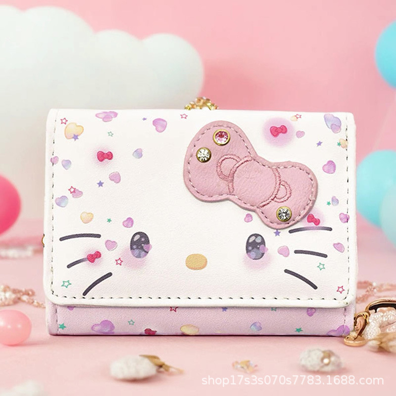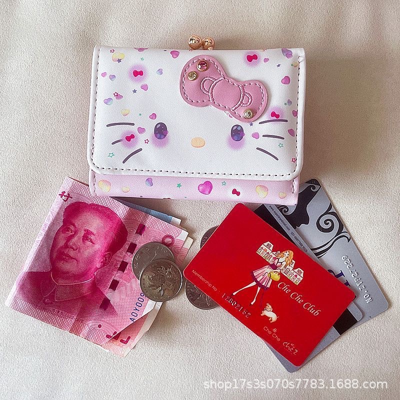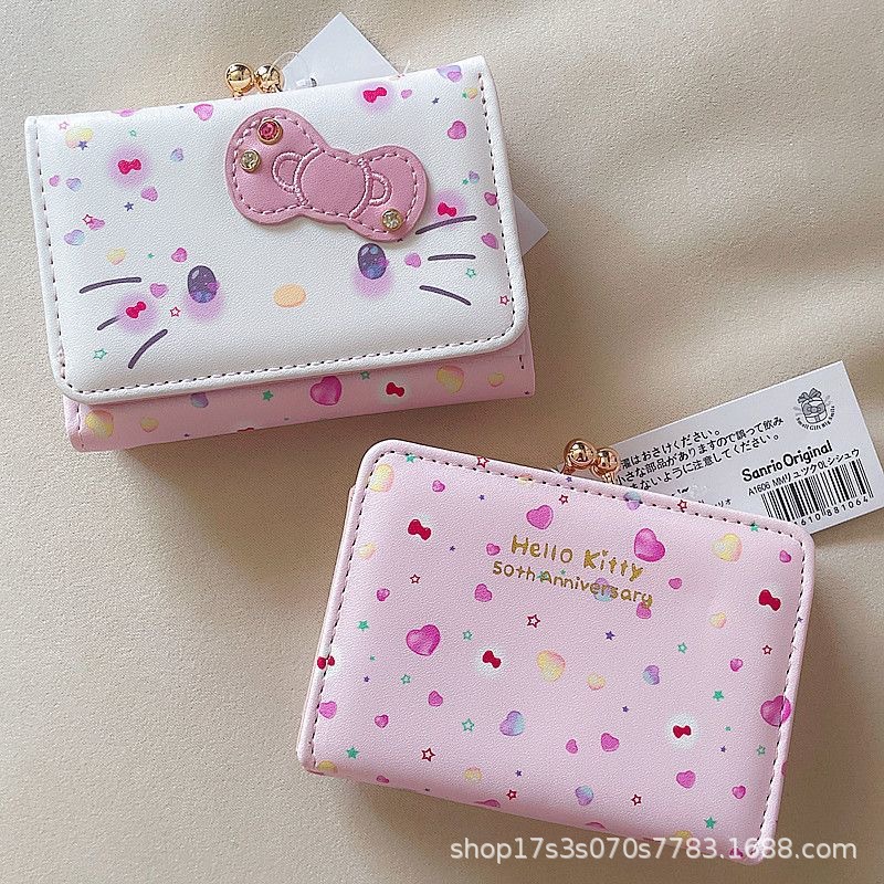 50 주년 케이티 짧은 지갑 여학생 고양이 레트로 트라이 폴드 카드 가방 JK 로리타 귀여운 KT 일본스토어 가기