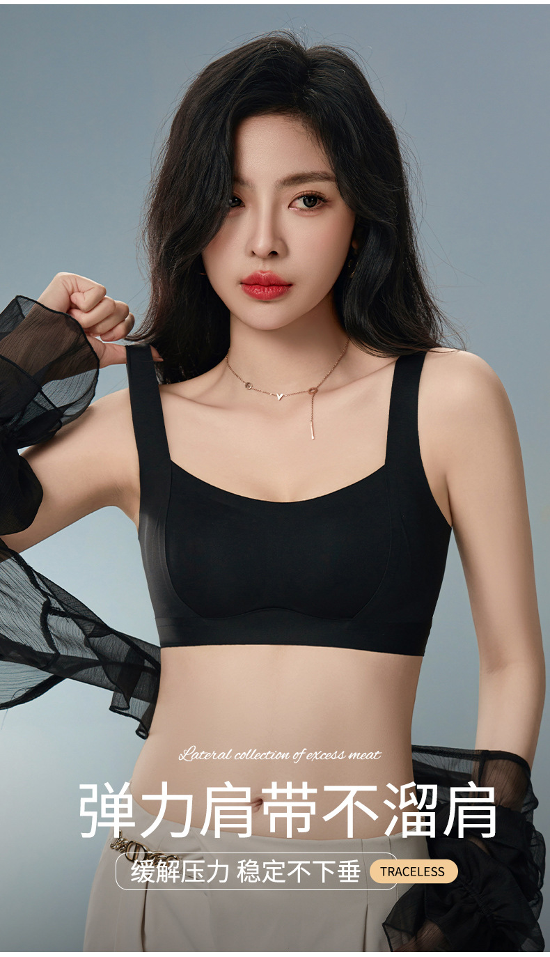 비 추적 속옷 여성의 비 강철 반지 작은 가슴 모임 및 패러 머리 처짐 방지 조정 가능한 조끼 형 스포츠 라텍스 브라