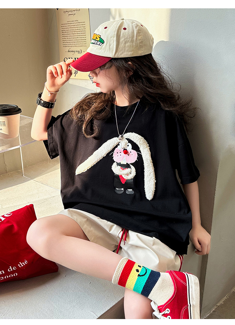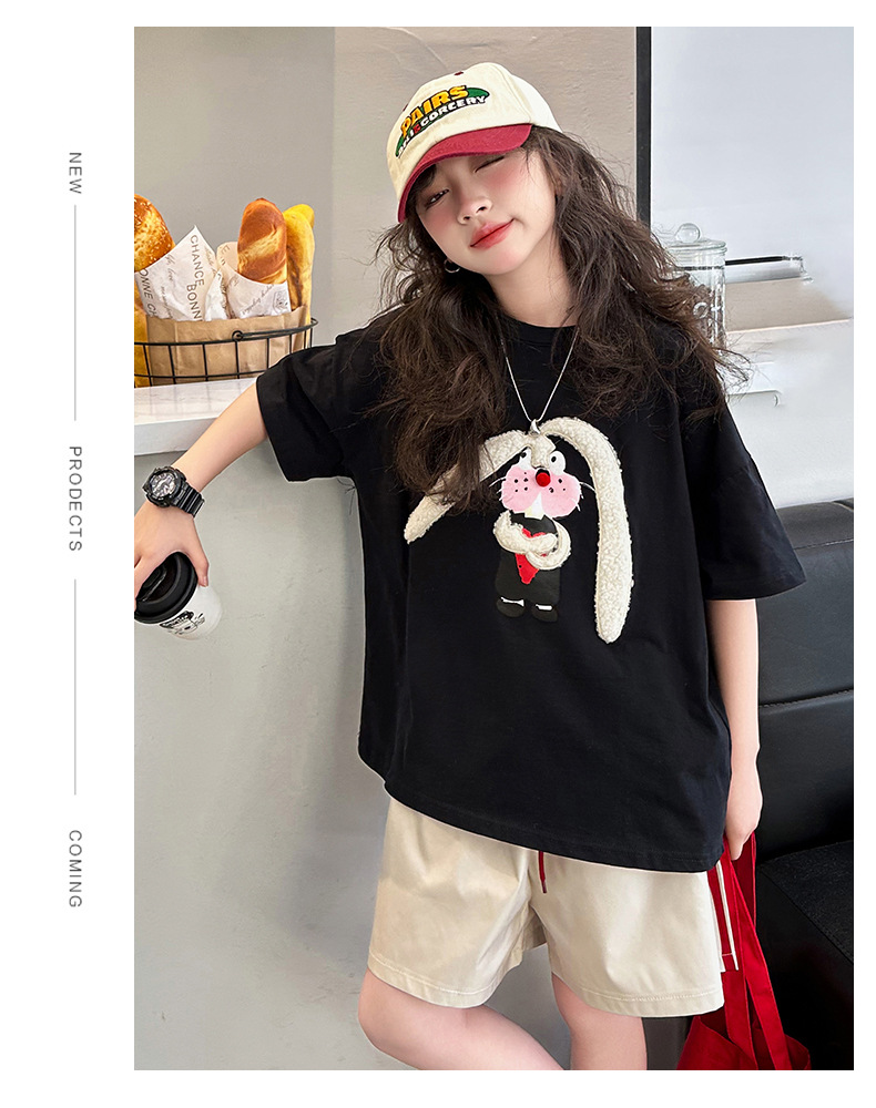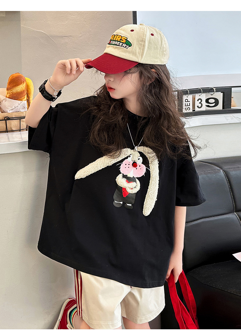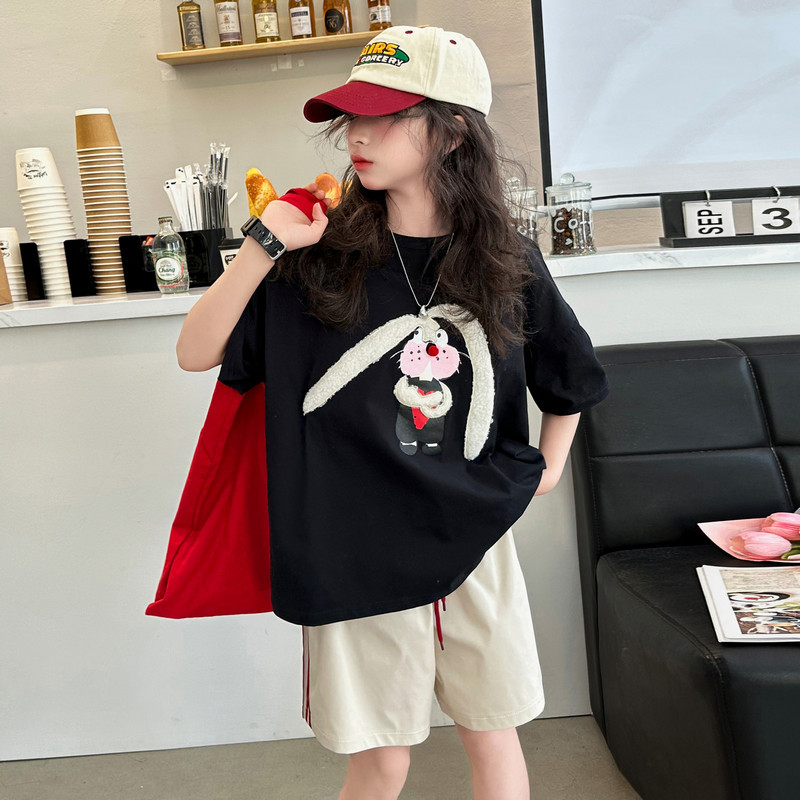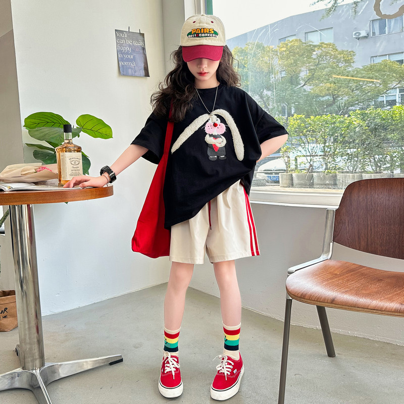 CUHK 소녀 여름 반팔 티셔츠 소녀 반소매 어린이 서양식 유행 퓨어 코튼 여름 패션 P 톱 옷 8 세 9스토어 가기