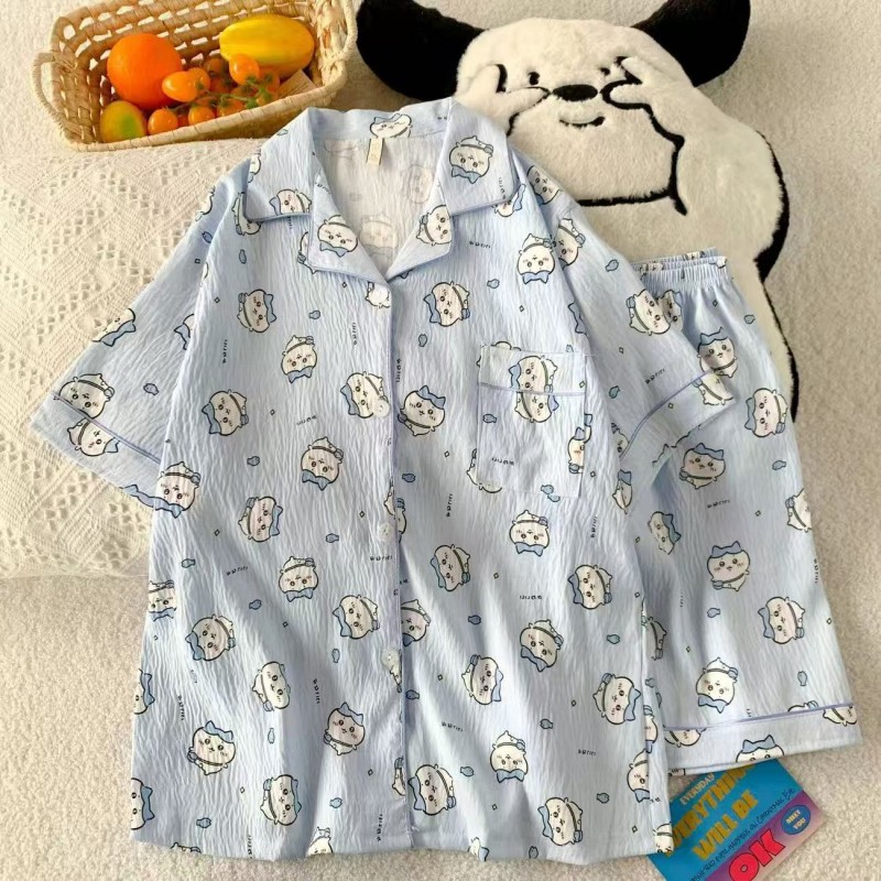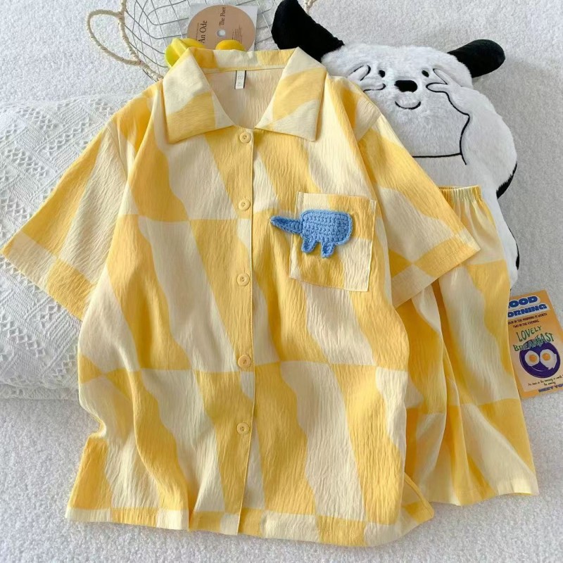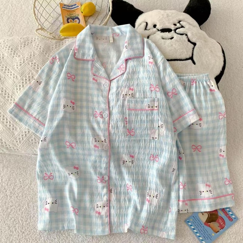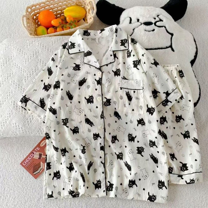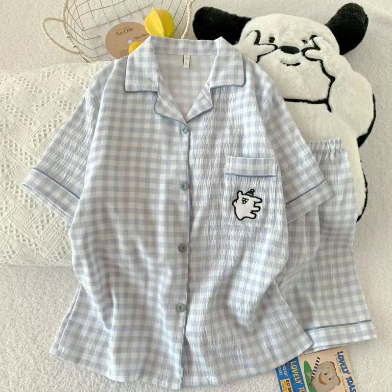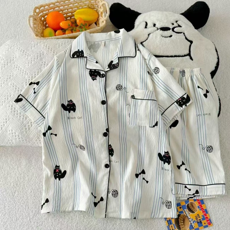 여성을위한 도파민 줄무늬 잠옷 여름 2025 새로운 반팔 정장 얇은 구름 면화 여름 여성 가정 의류스토어 가기