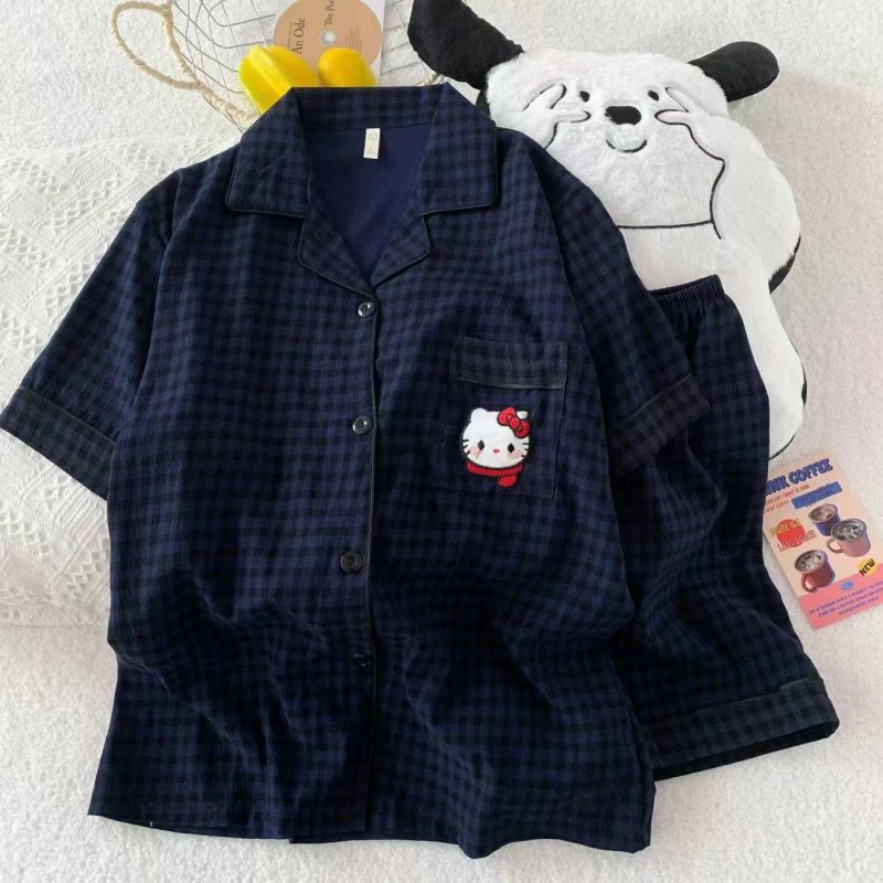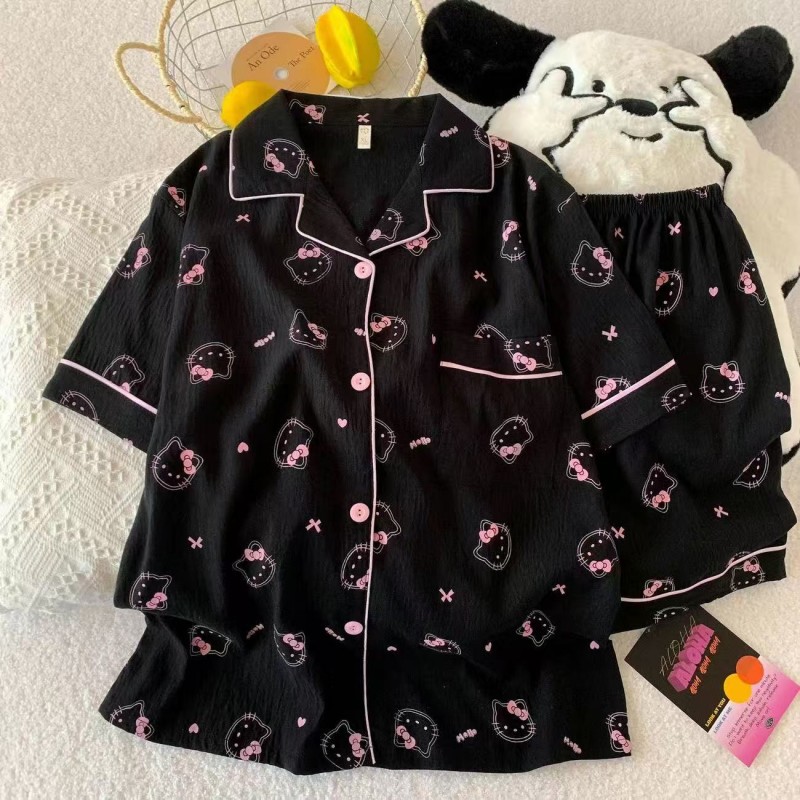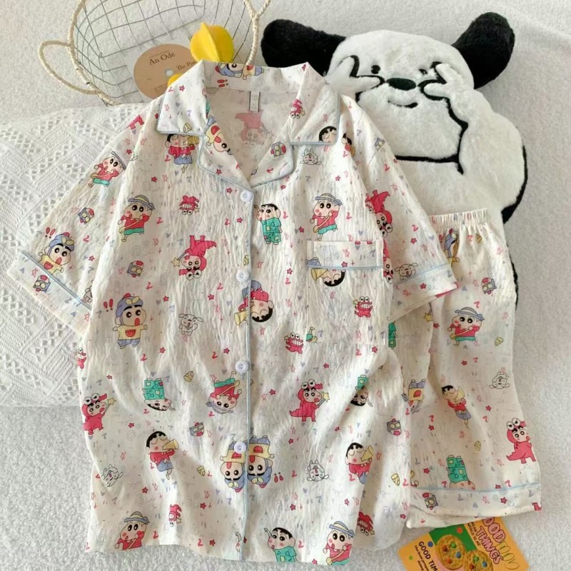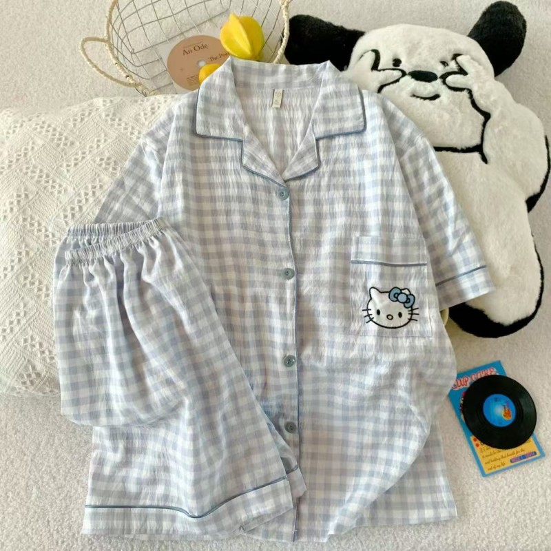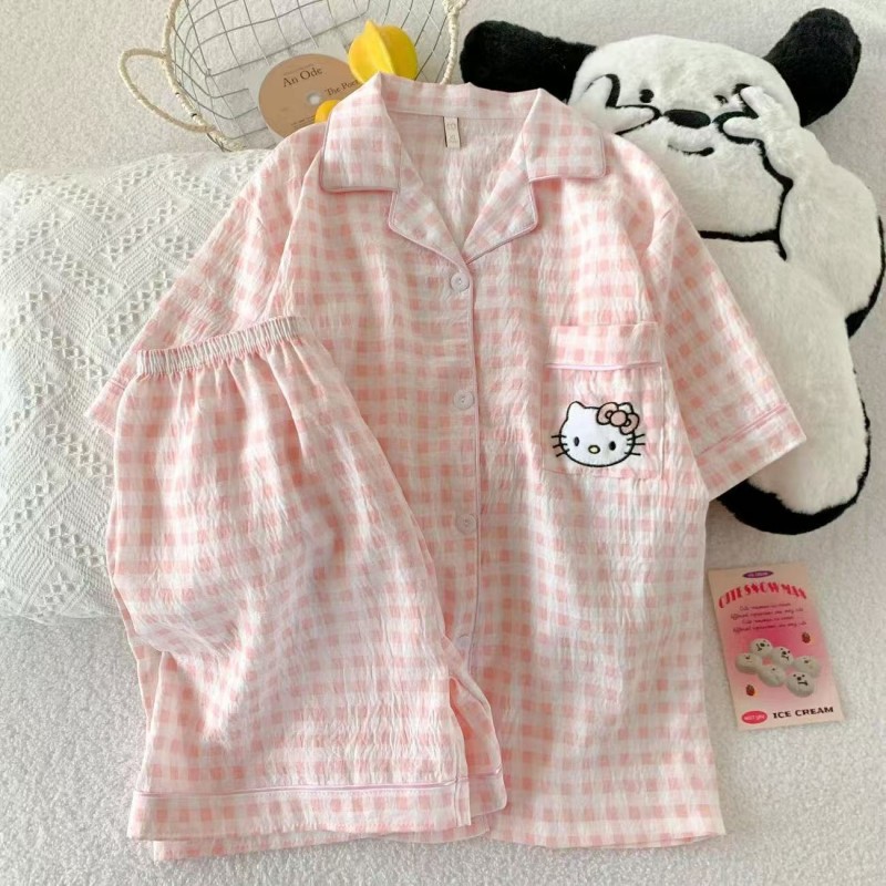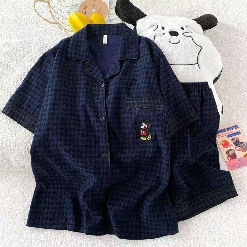 여성을위한 도파민 줄무늬 잠옷 여름 2025 새로운 반팔 정장 얇은 구름 면화 여름 여성 가정 의류스토어 가기