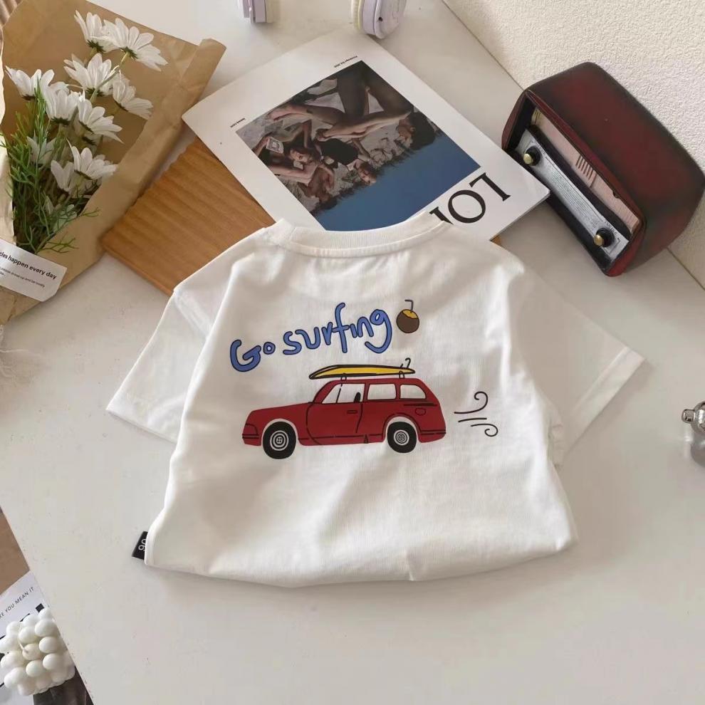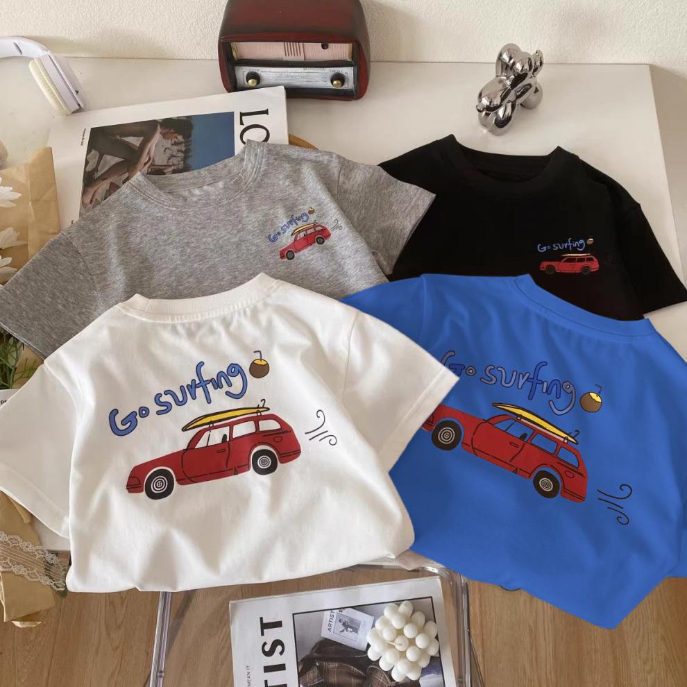 여름 어린이 면 반소매 티셔츠 새로운 스타일 중소 아기 둥근 목 만화 인쇄 서양식 반소매 탑 코튼 T스토어 가기