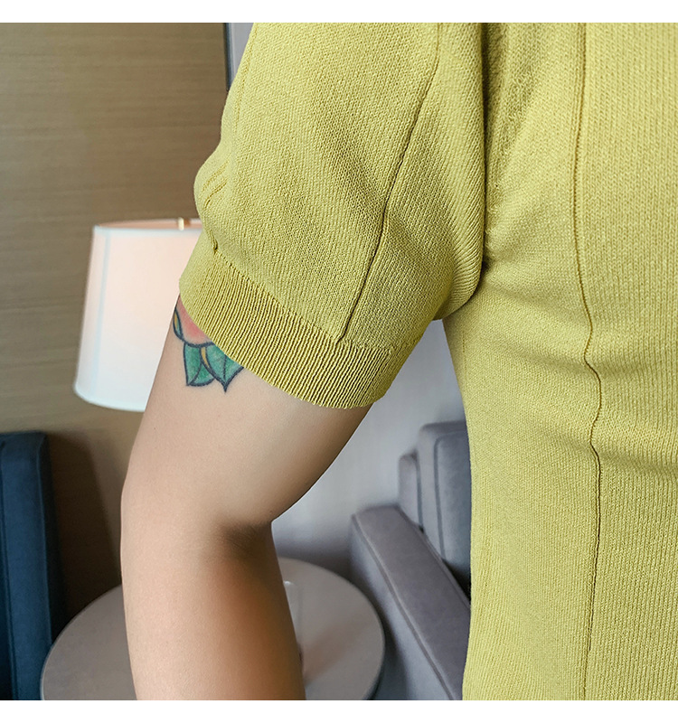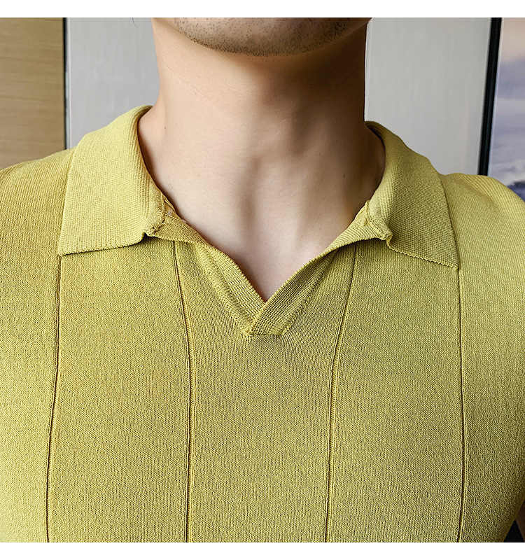 아이스 실크 반팔 티셔츠 남자 여름 2023 뉴 비즈니스 남자 탑 더피 핸섬 V 넥 니트 폴로 셔츠스토어 가기