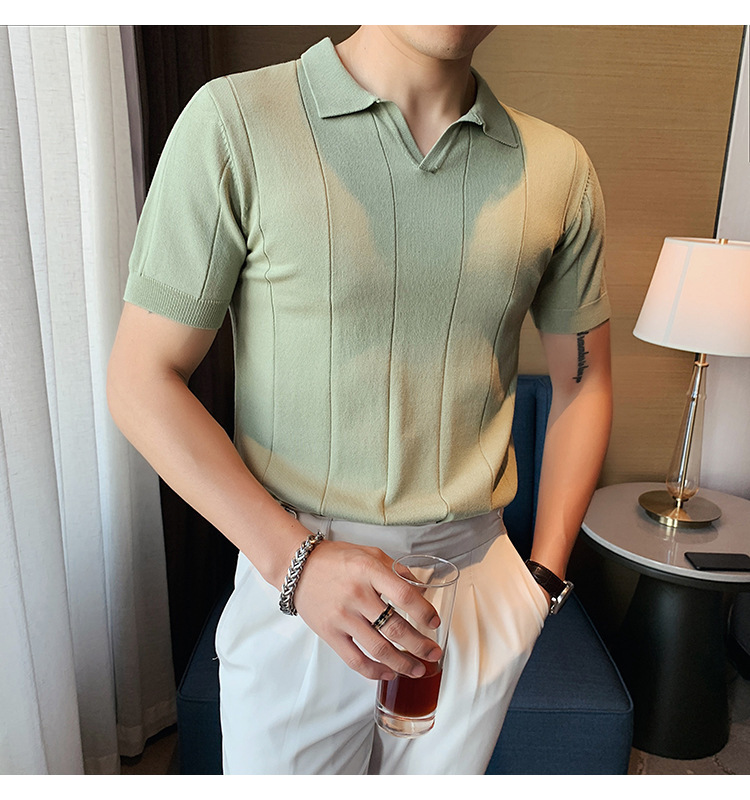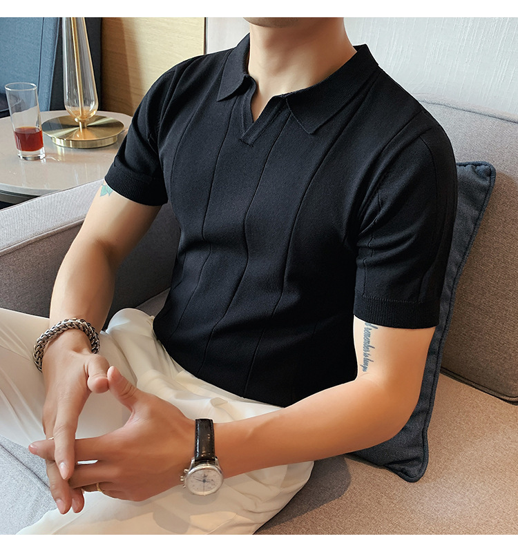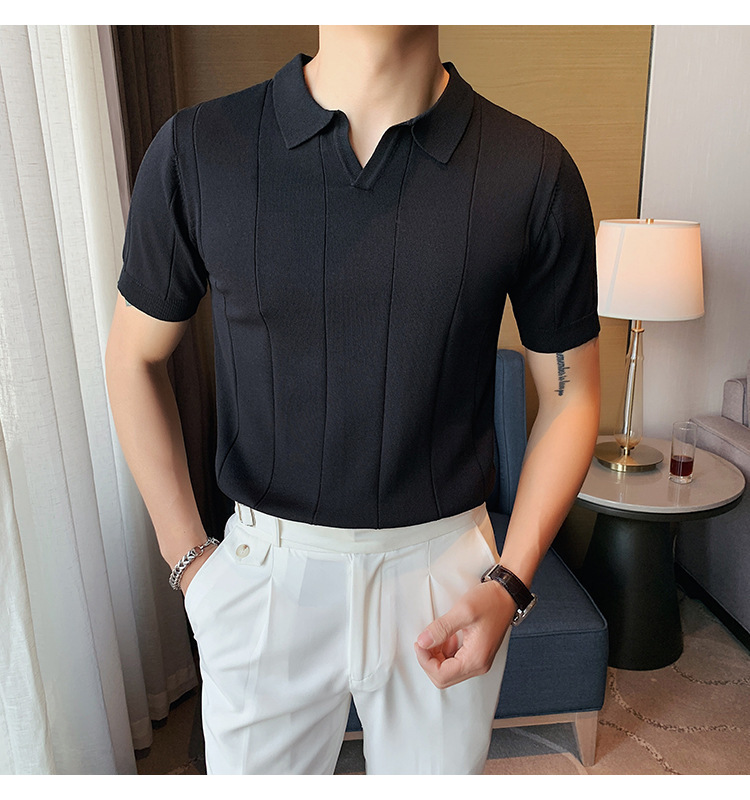 아이스 실크 반팔 티셔츠 남자 여름 2023 뉴 비즈니스 남자 탑 더피 핸섬 V 넥 니트 폴로 셔츠