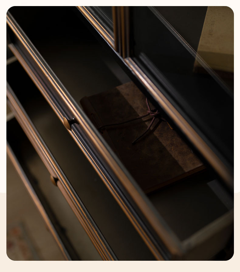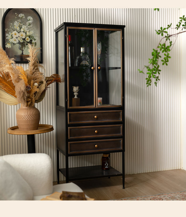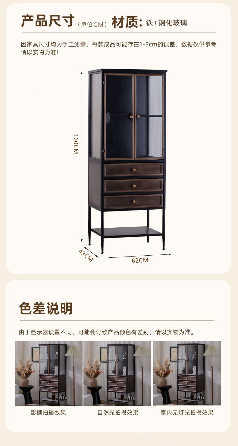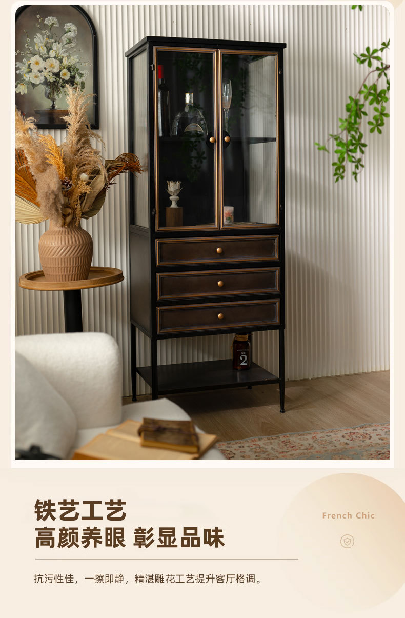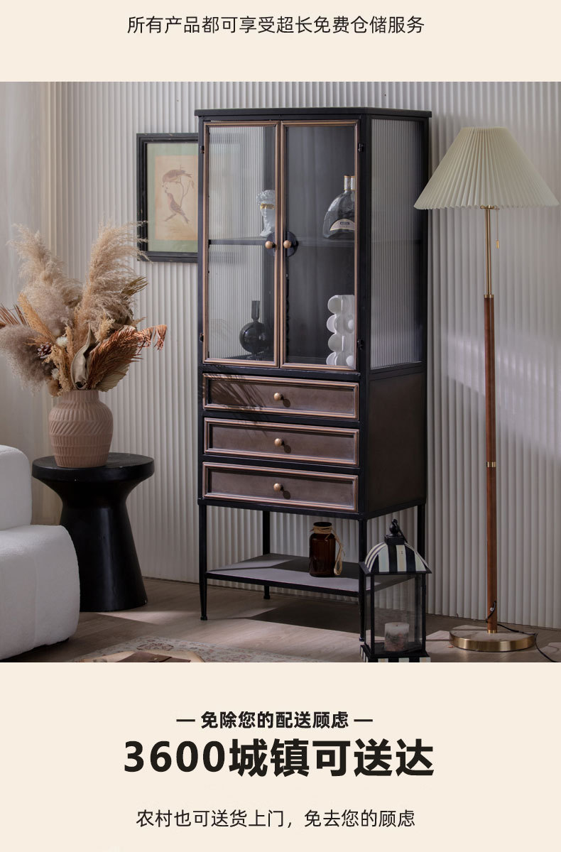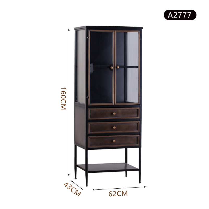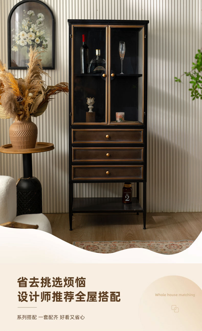 미국 스타일 가벼운 고급 유리 캐비닛 실키 스타일 거실 수제 공예 디스플레이 캐비닛 산업 스타일 멀티 서랍 보관 캐비닛
