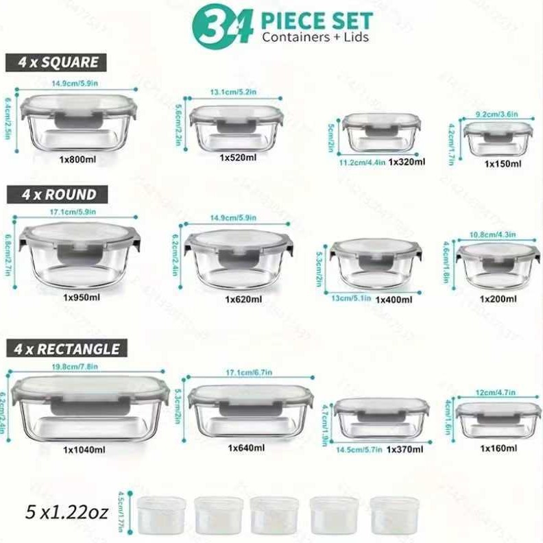 높은 붕규산 유리 도시락 상자 이동식 아마존 TEMU 국경 간 내열 유리 크리스퍼 낙하 방지 FCM