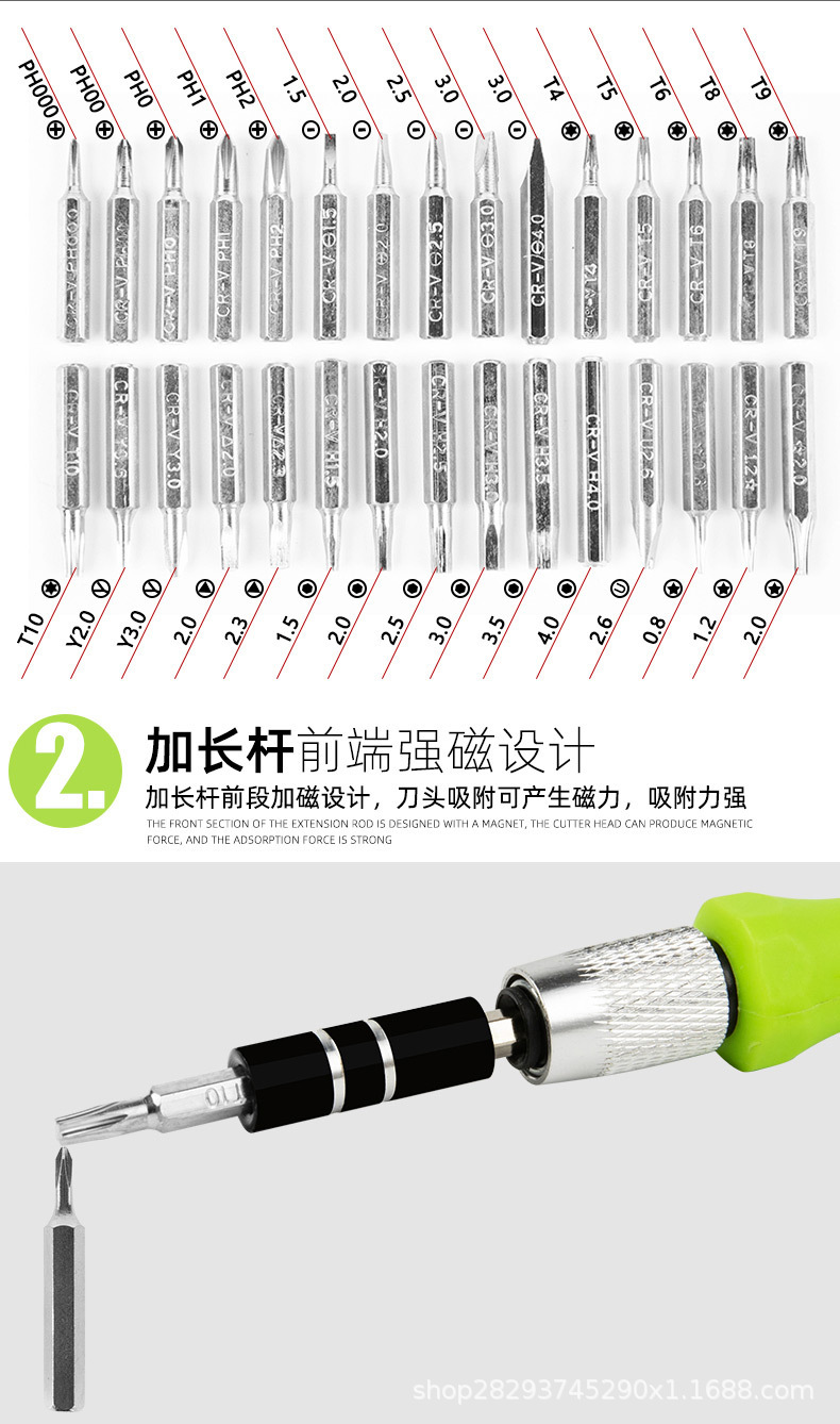 32-in-one 스크루 드라이버 세트 휴대 전화 분해 기계 유지 보수 가정용 다기능 분해 기계 스크루 드라이버 크로스 배치 헤드
