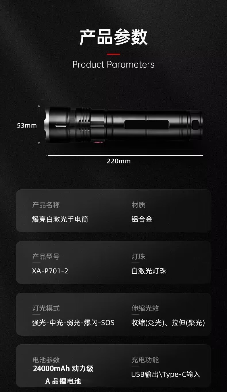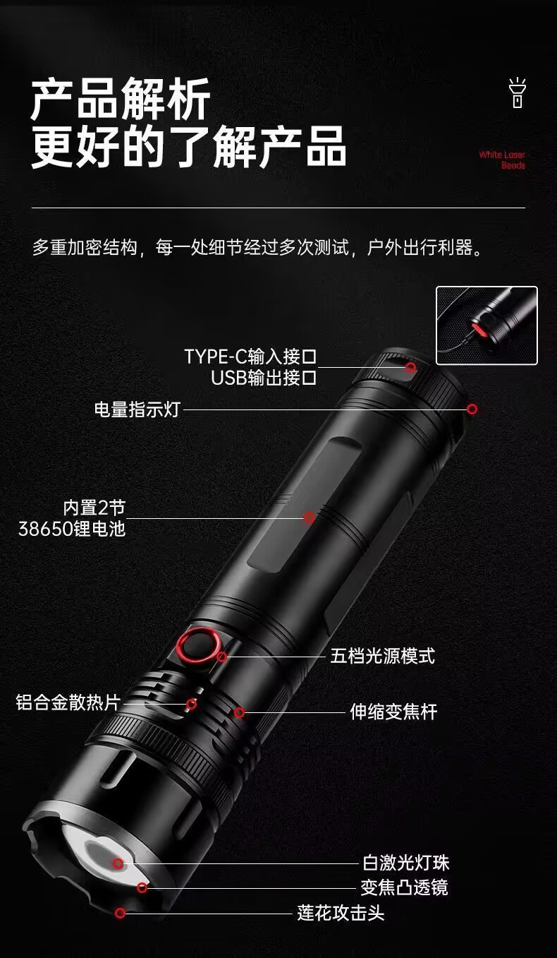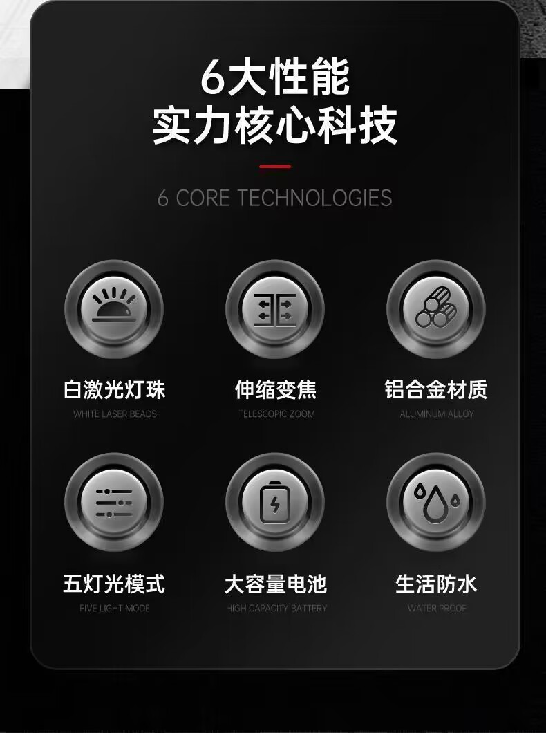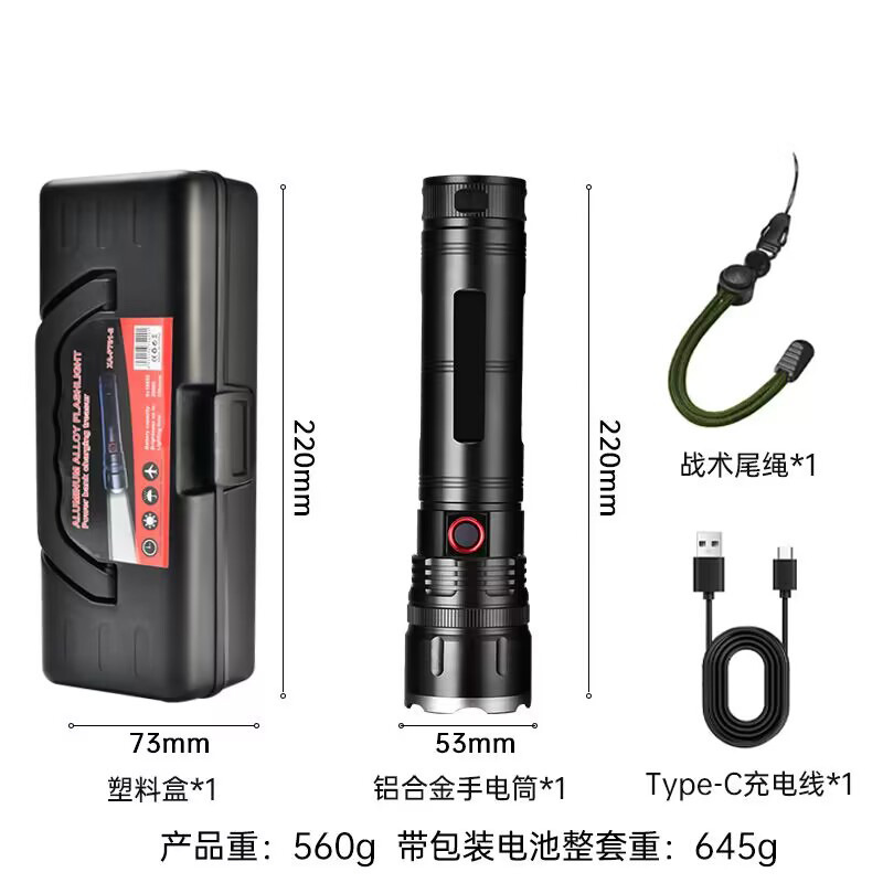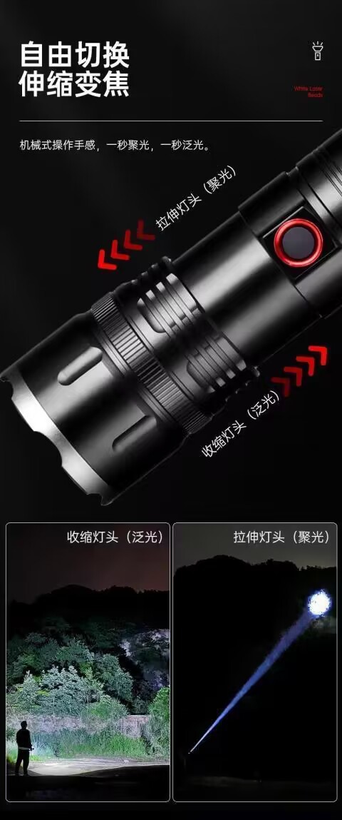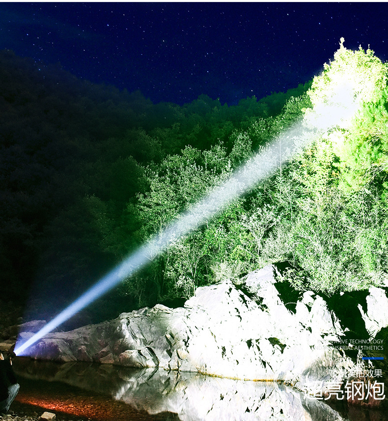 강력한 조명 조명 야외 순찰 등산에 초점을 맞춘 하늘 대포 망원경을 통해 슈퍼 밝은 강한 가벼운 경로 합금 손전등을 주도스토어 가기