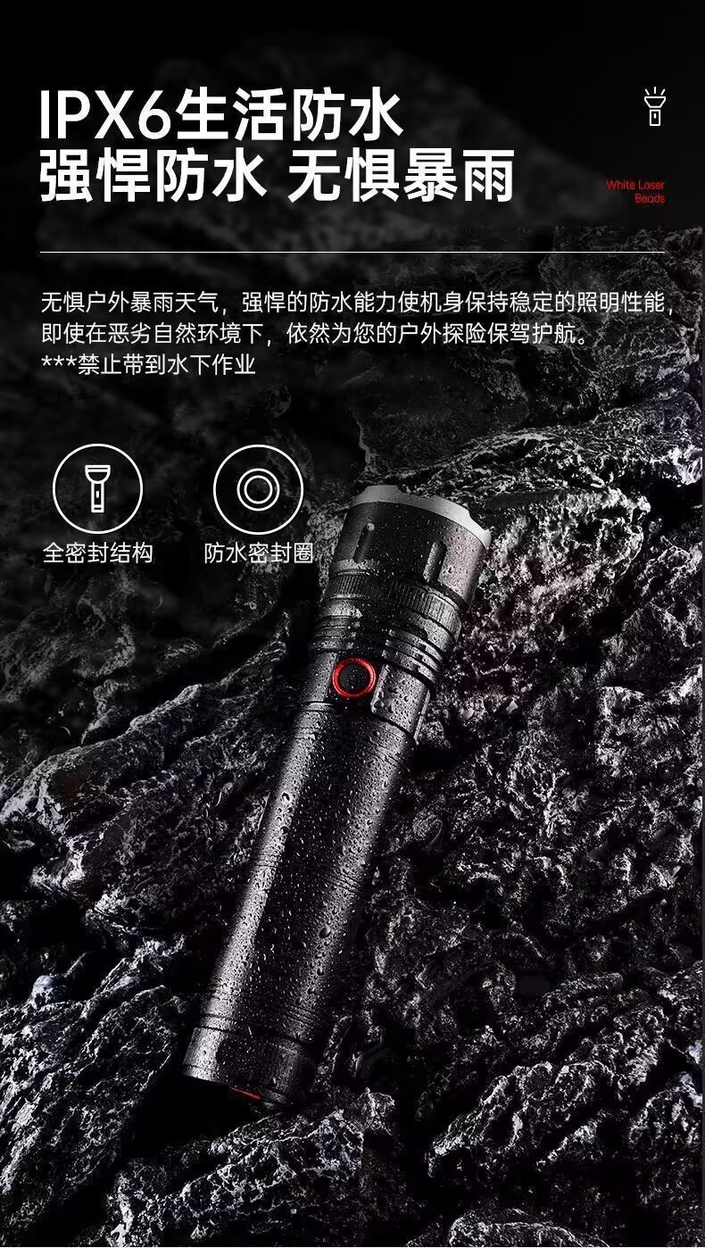 강력한 조명 조명 야외 순찰 등산에 초점을 맞춘 하늘 대포 망원경을 통해 슈퍼 밝은 강한 가벼운 경로 합금 손전등을 주도