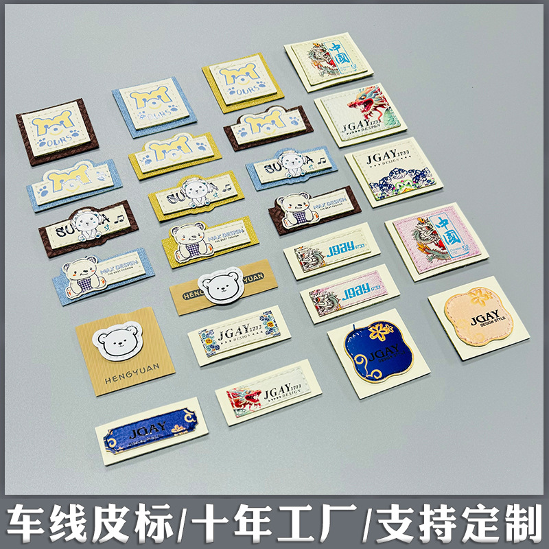 더블 자동차 라인 가죽 라벨 10 년 공장 pu 가죽 uv 인쇄 오일 로고 가죽 배지 의류 장식 표준 가죽 브랜드스토어 가기