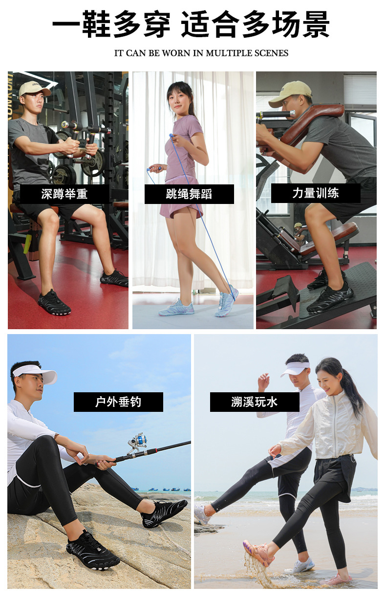 2025 국경을 넘는 야외 새로운 다섯 손가락 신발 비치 신발 통기성 수영복 신발 남성과 여성의 수로 수륙 양용 신발