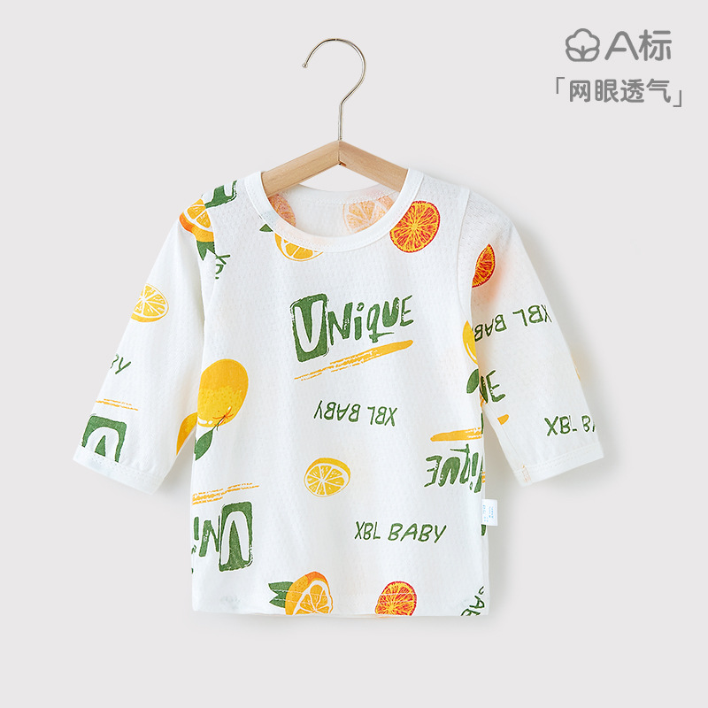 아기의 긴팔 티셔츠 여름 얇은 순면 메쉬 통기성 남성과 여성의 아기 에어컨 의류 최고 어린이 홈 의류스토어 가기