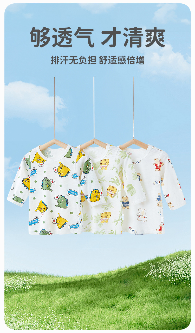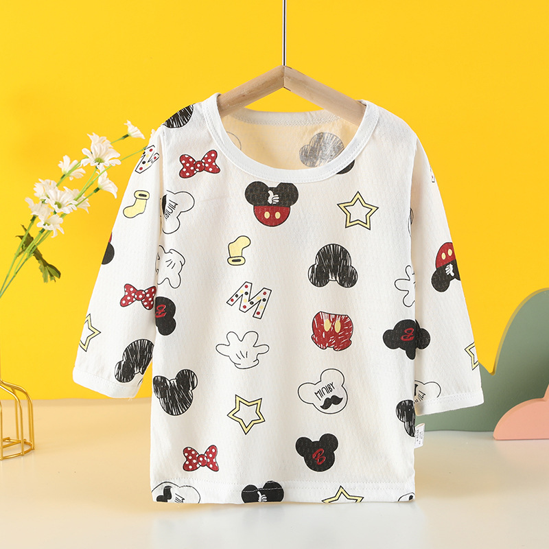 아기의 긴팔 티셔츠 여름 얇은 순면 메쉬 통기성 남성과 여성의 아기 에어컨 의류 최고 어린이 홈 의류