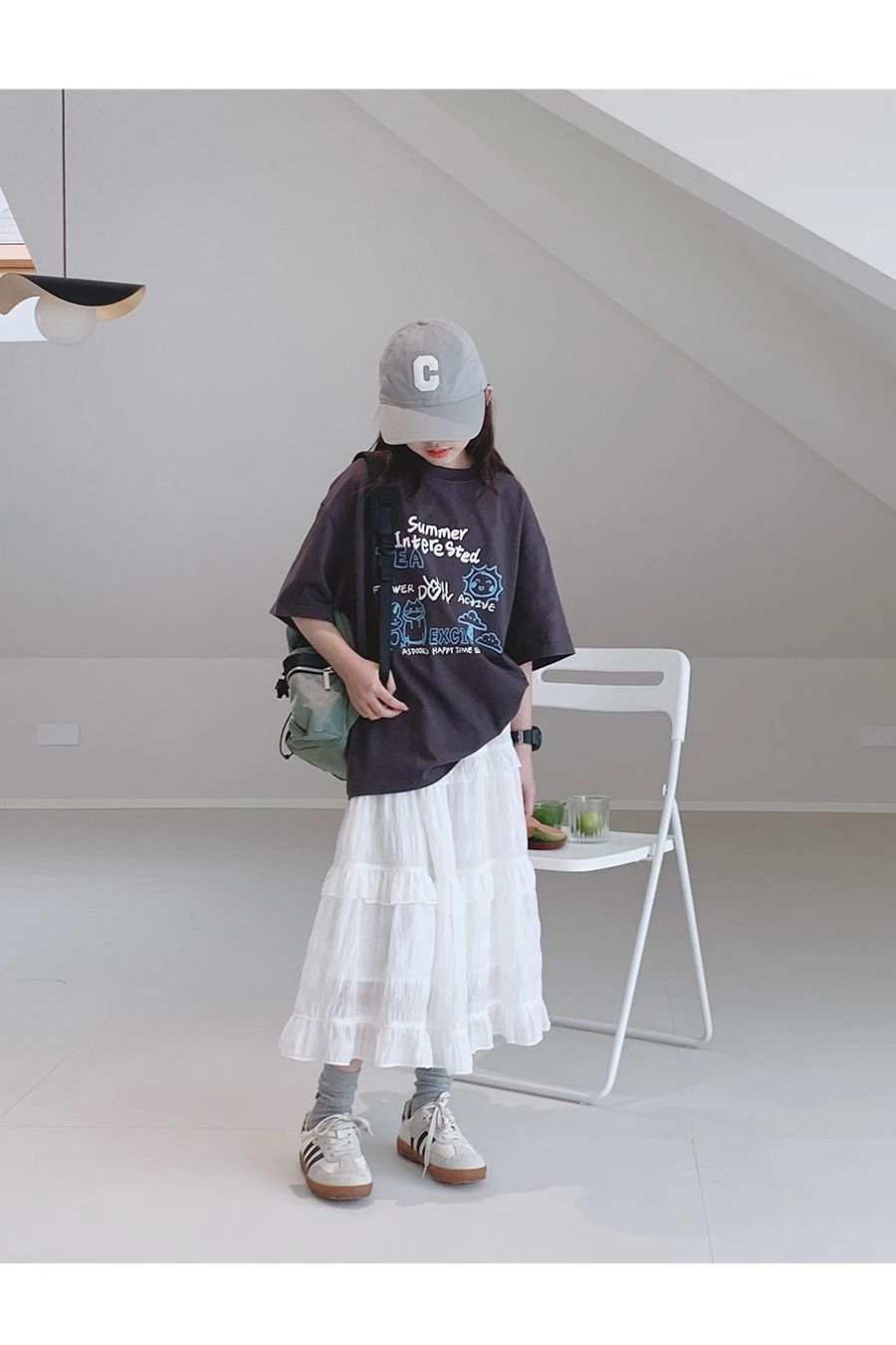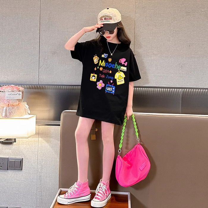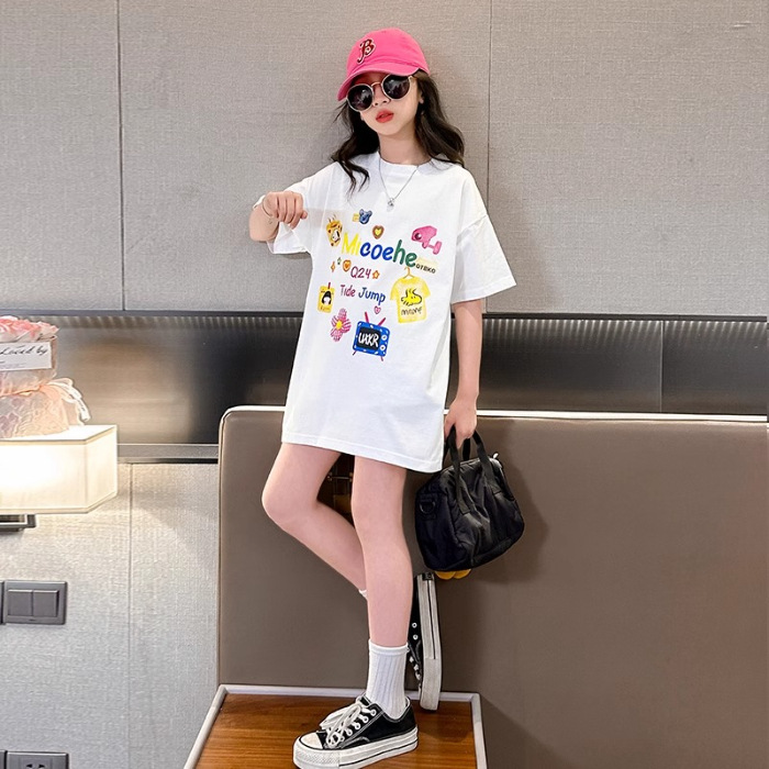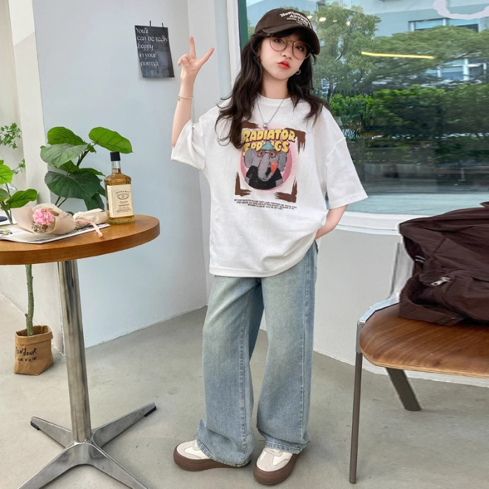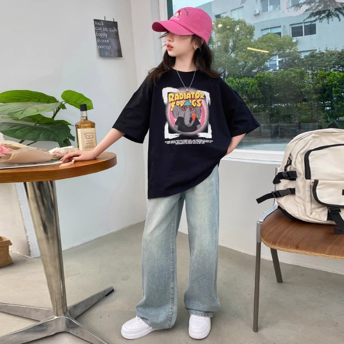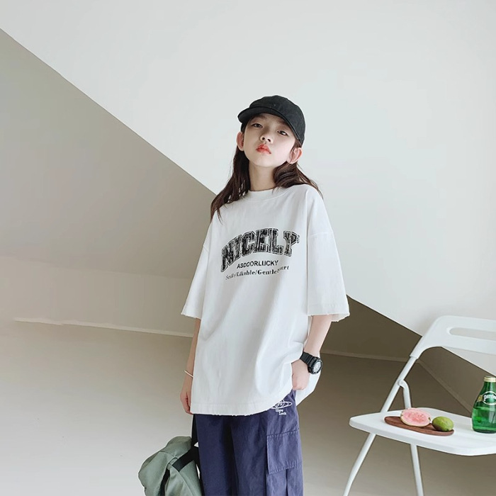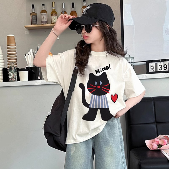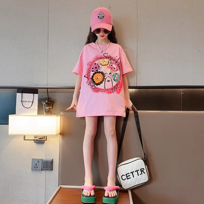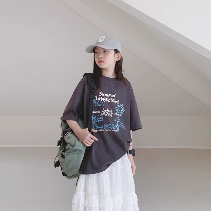 여아 티셔츠 2026 여름 신상품 여아 중학생 프린트 반팔 중학생 아동 루즈핏 상의 트렌디