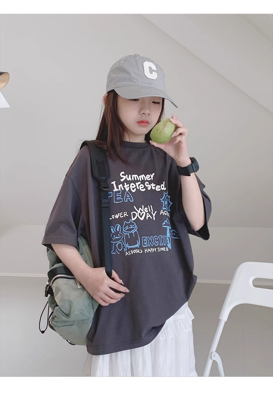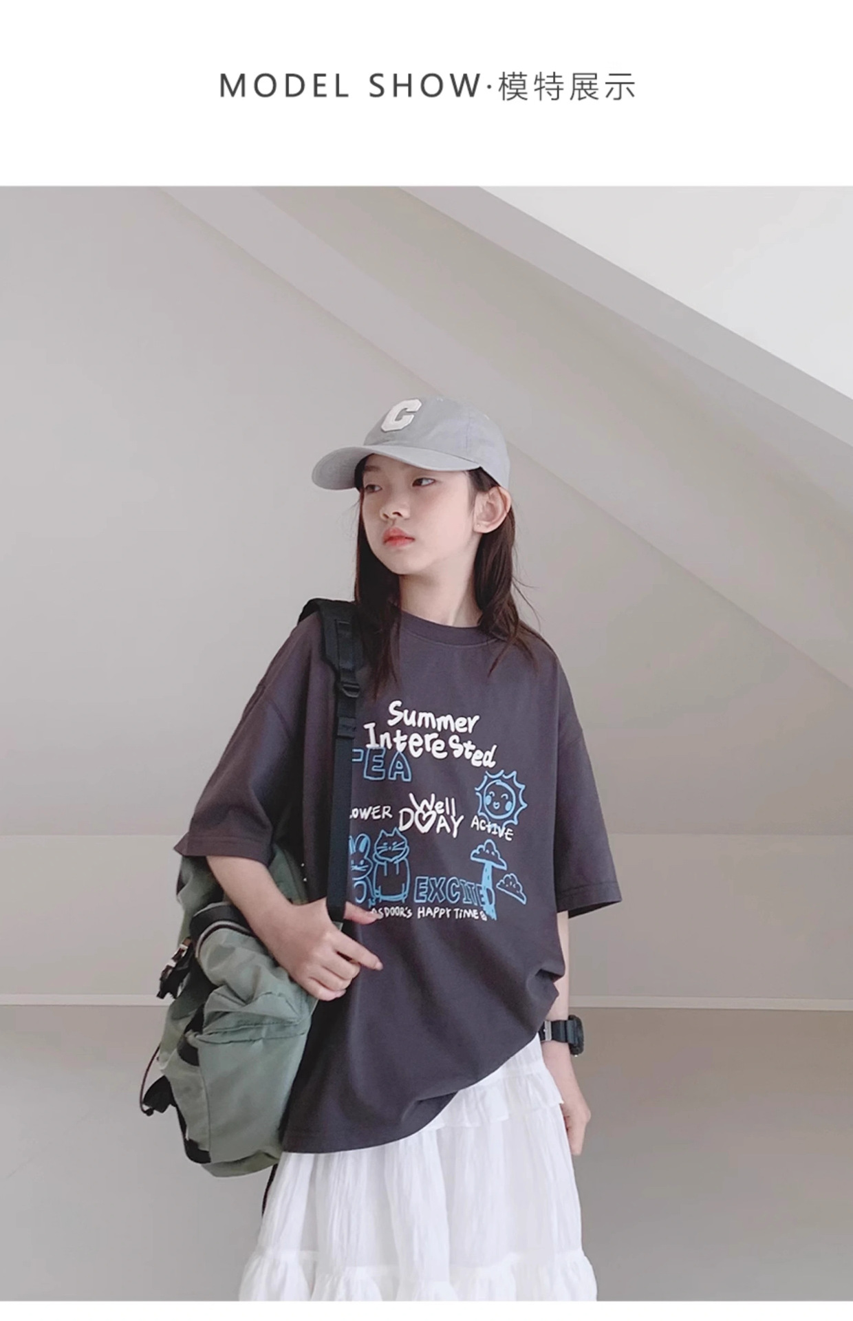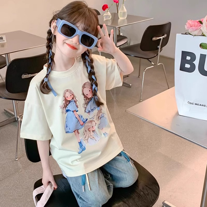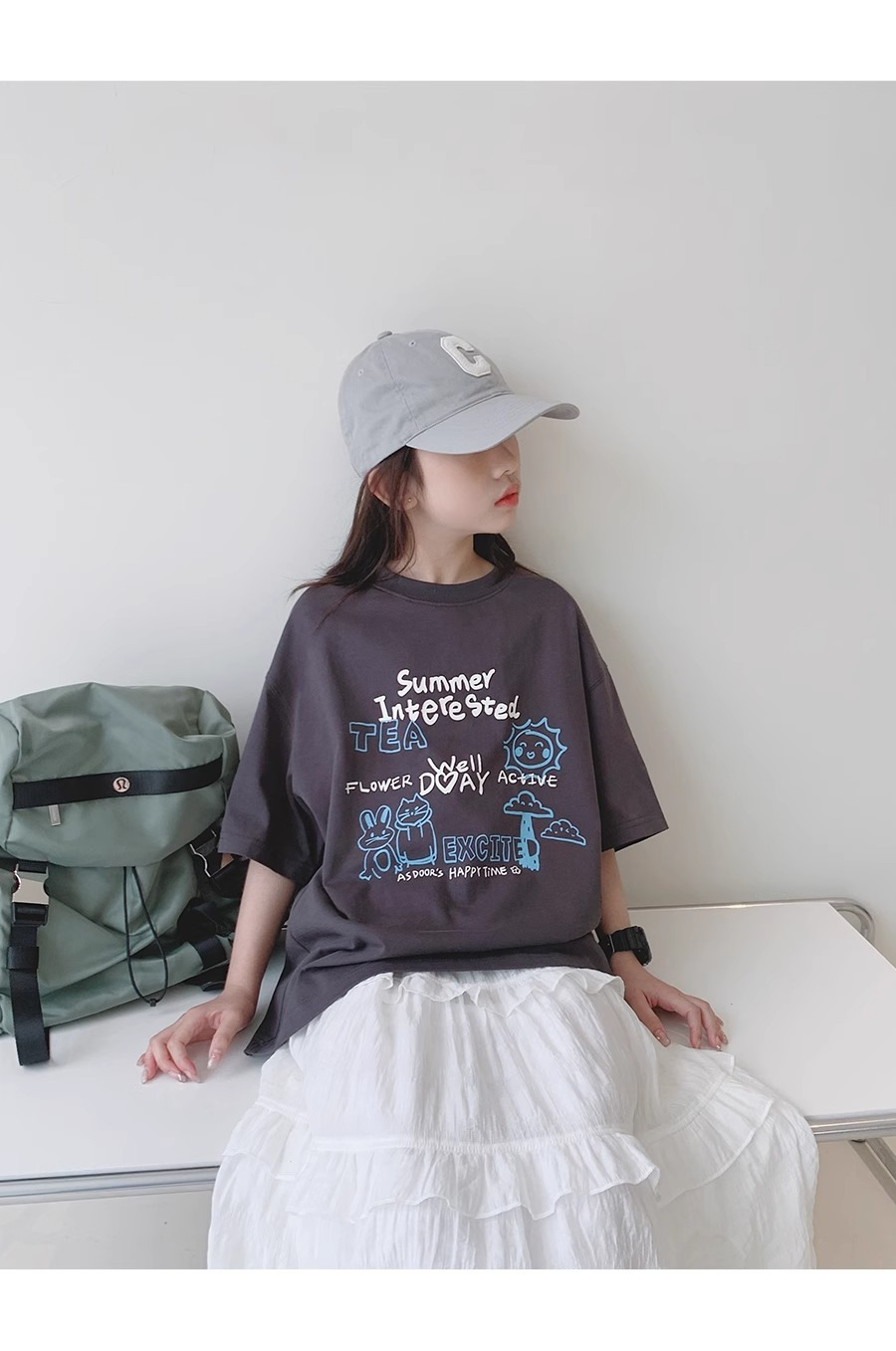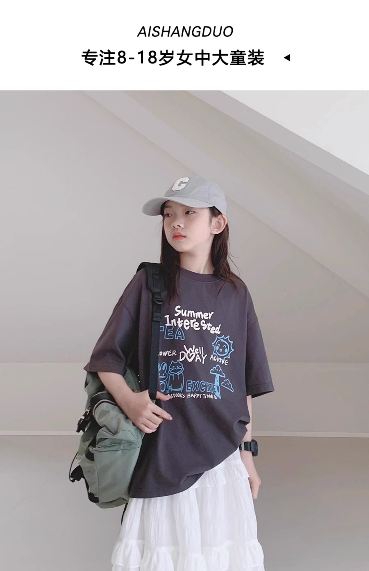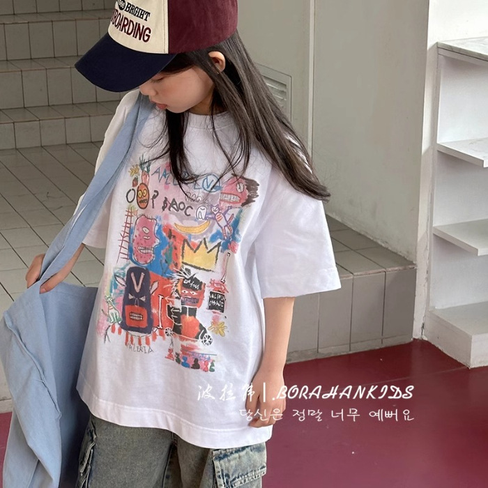 여아 티셔츠 2026 여름 신상품 여아 중학생 프린트 반팔 중학생 아동 루즈핏 상의 트렌디스토어 가기