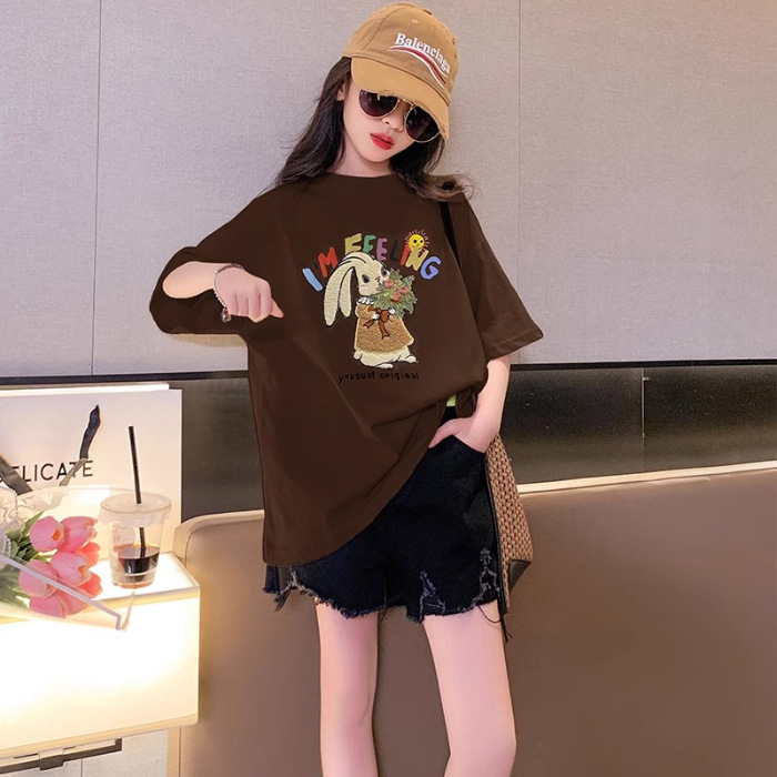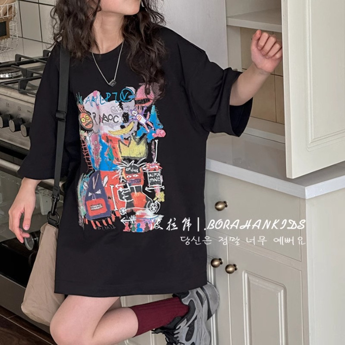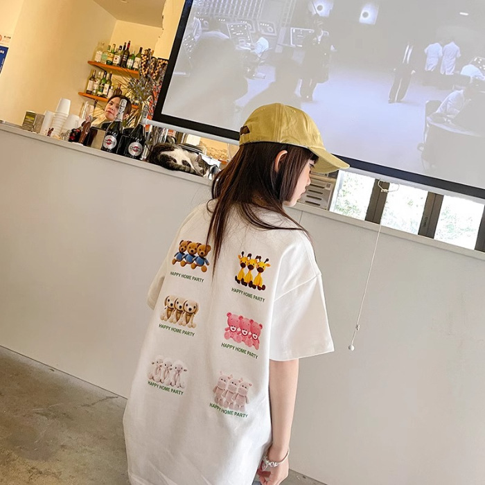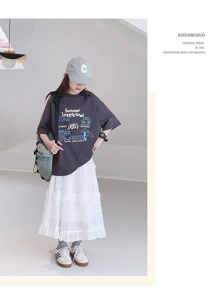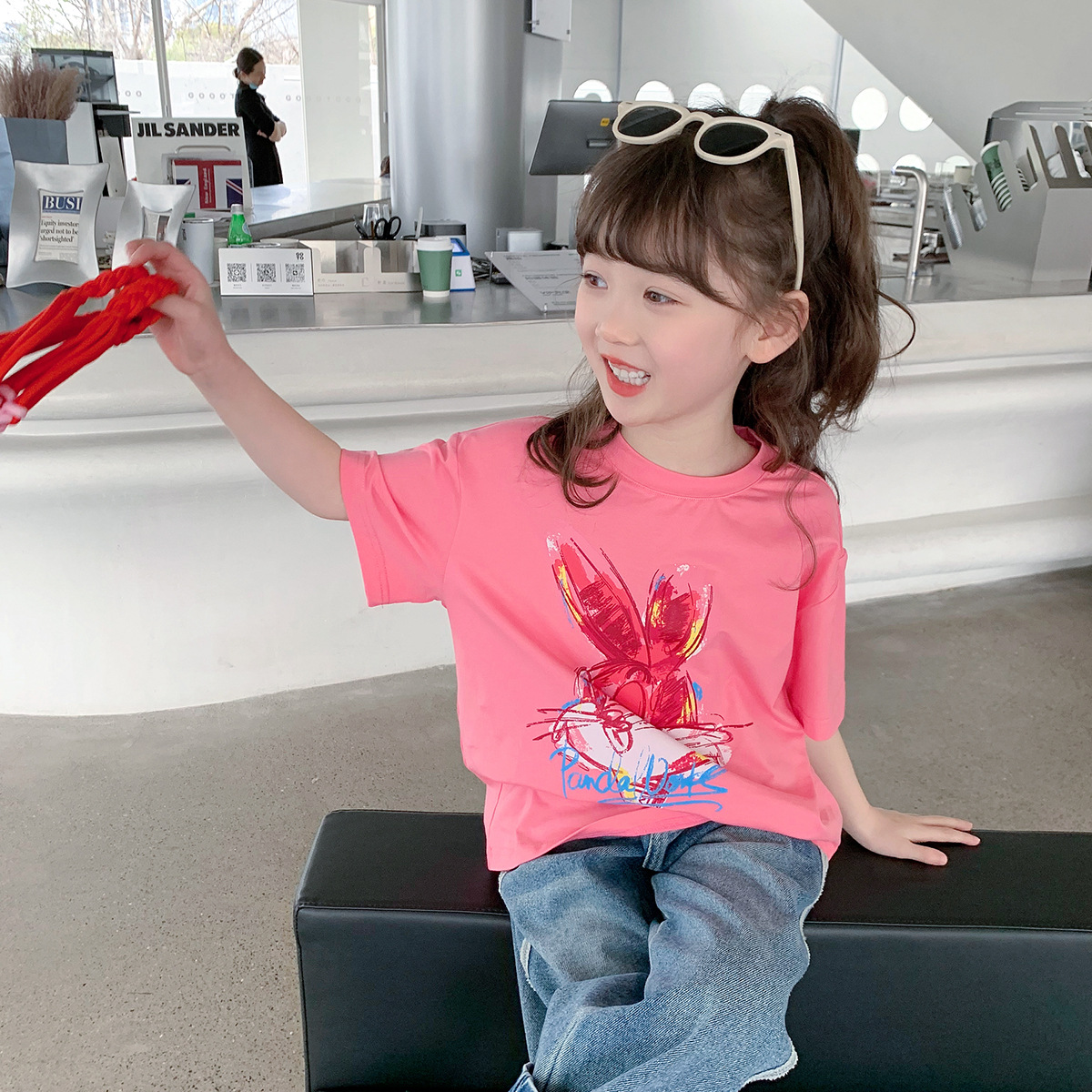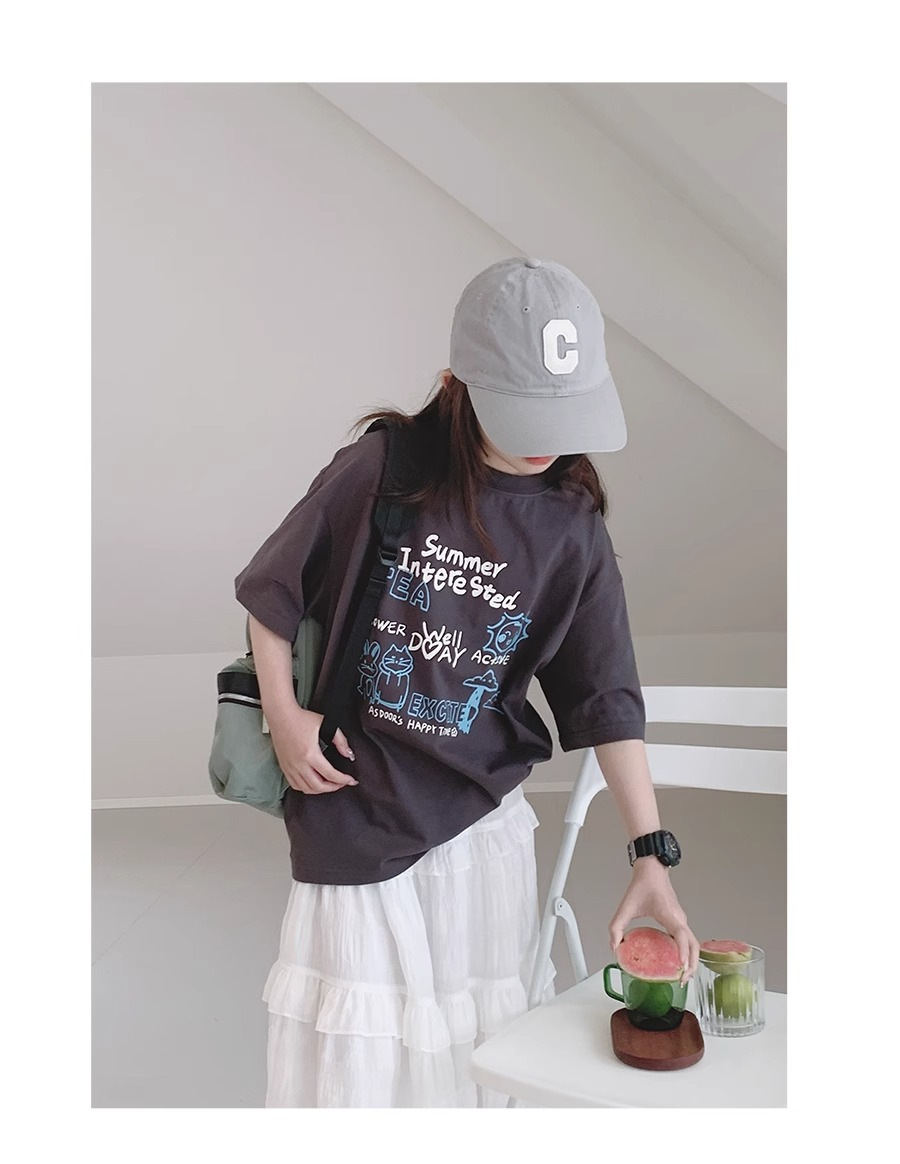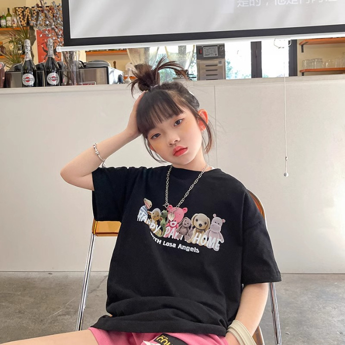 여아 티셔츠 2026 여름 신상품 여아 중학생 프린트 반팔 중학생 아동 루즈핏 상의 트렌디스토어 가기