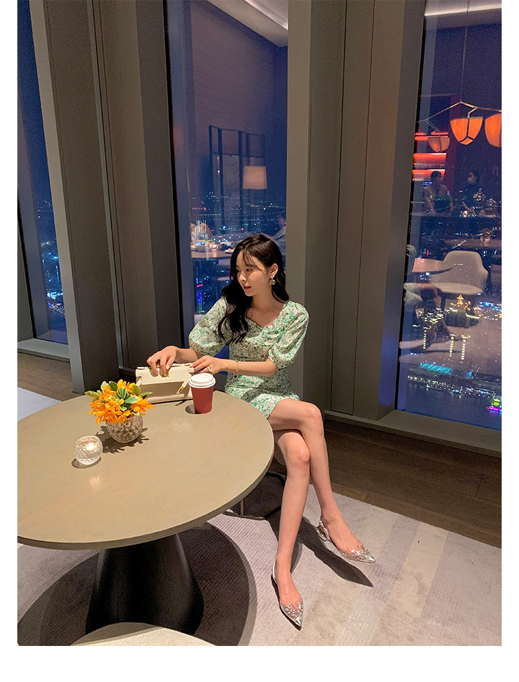 2025 봄과 여름 새로운 투명 라인 석 지적 발가락 낮은 굽 샌들 여성 요정 스타일 틈새 Baotou 라인 석 플랫 신발스토어 가기