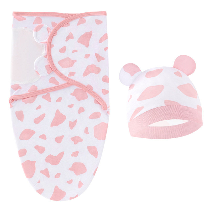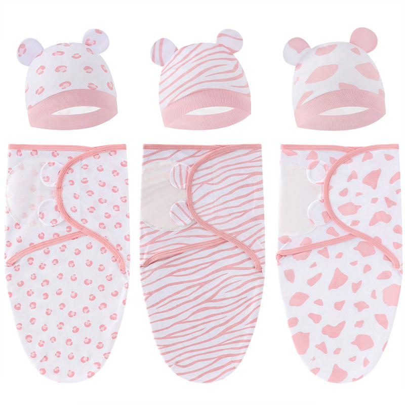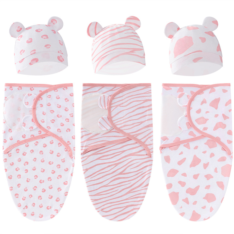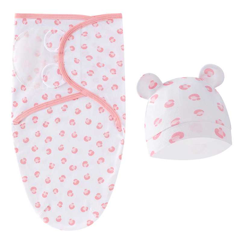 • 핑크 레오파드-인쇄 Swaddling 핑크-가장자리 모자