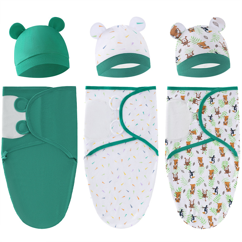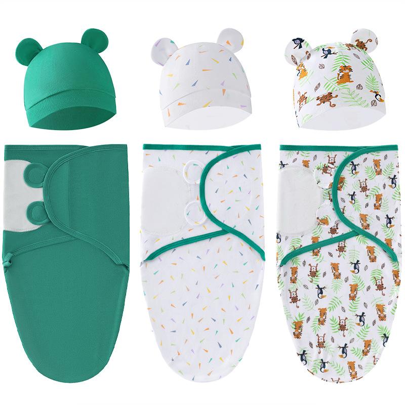 대외 무역 유럽과 미국 신생아 아기 스와들링 룸 포장 수건 아기 봄 누에 슬리핑 백 태아 모자 세트 아기의 결합 된 잠옷