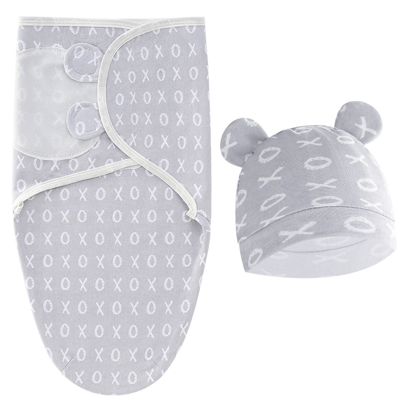 • (회색 XO + 작은 화살표 + 회색 배경의 작은 별) 3가지 조합 봄 누에 침낭 + 모자