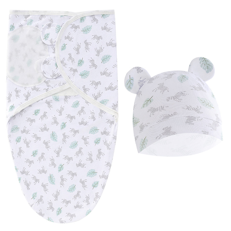 • 녹색 잎 얼룩말 봄 누에 침낭 + 모자